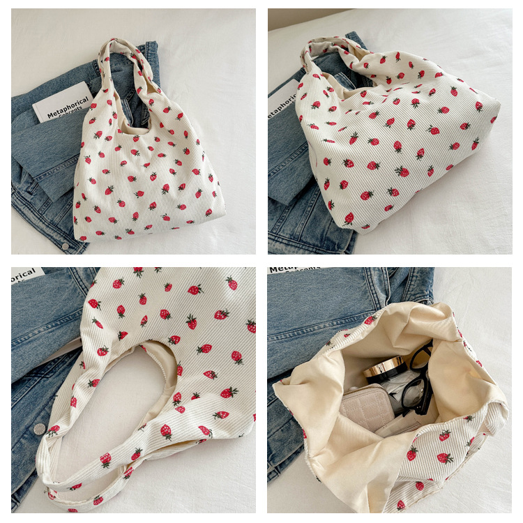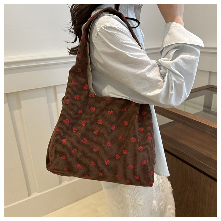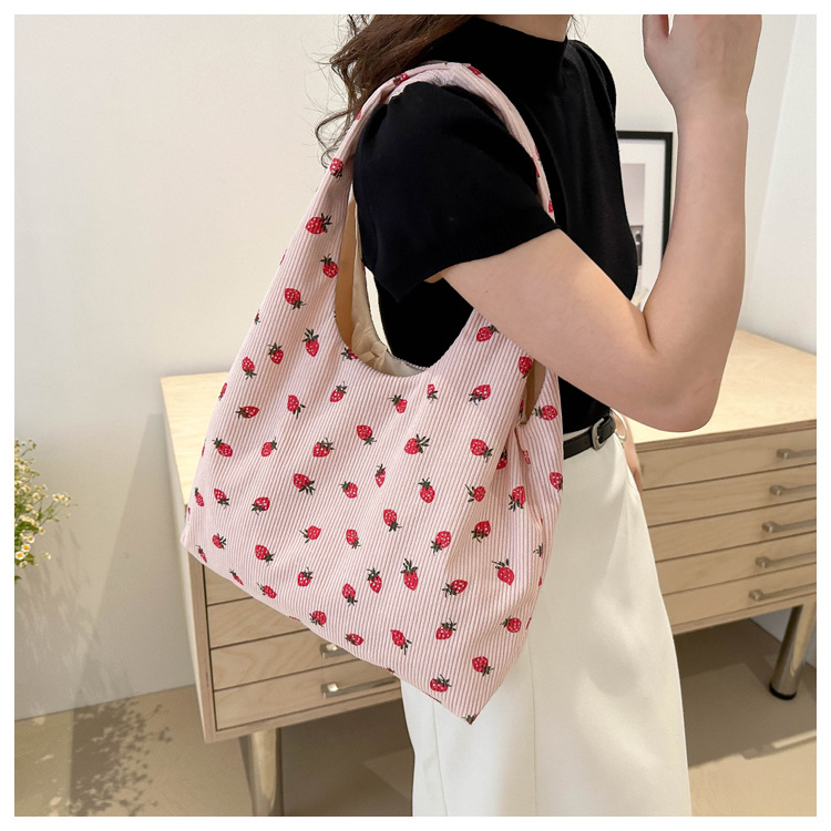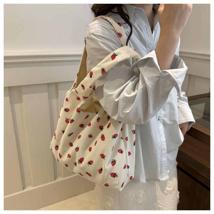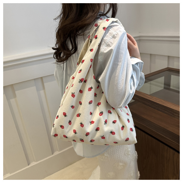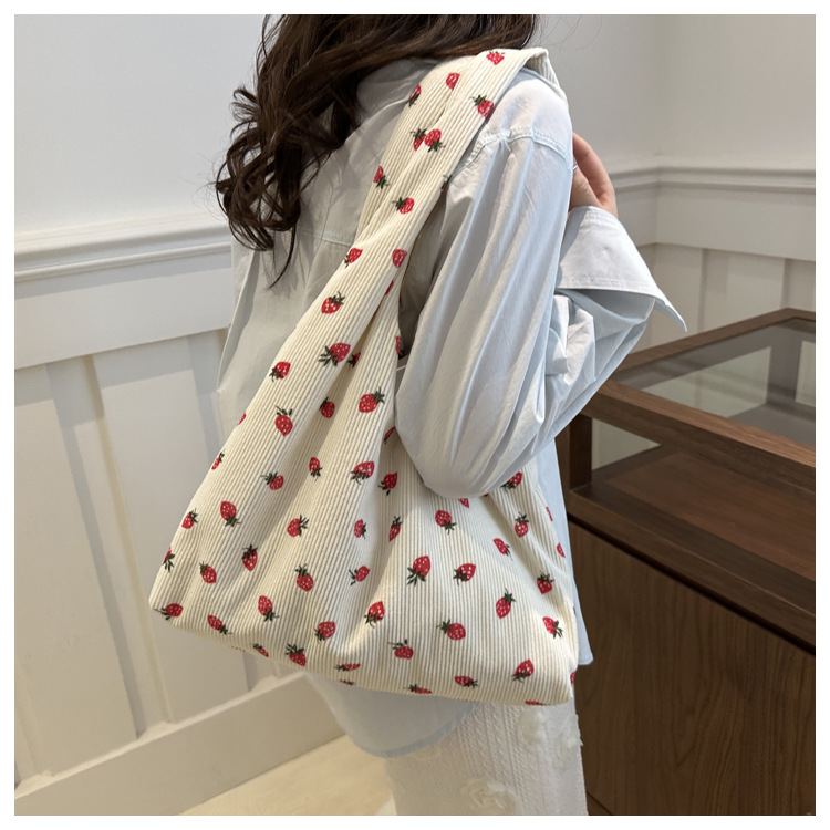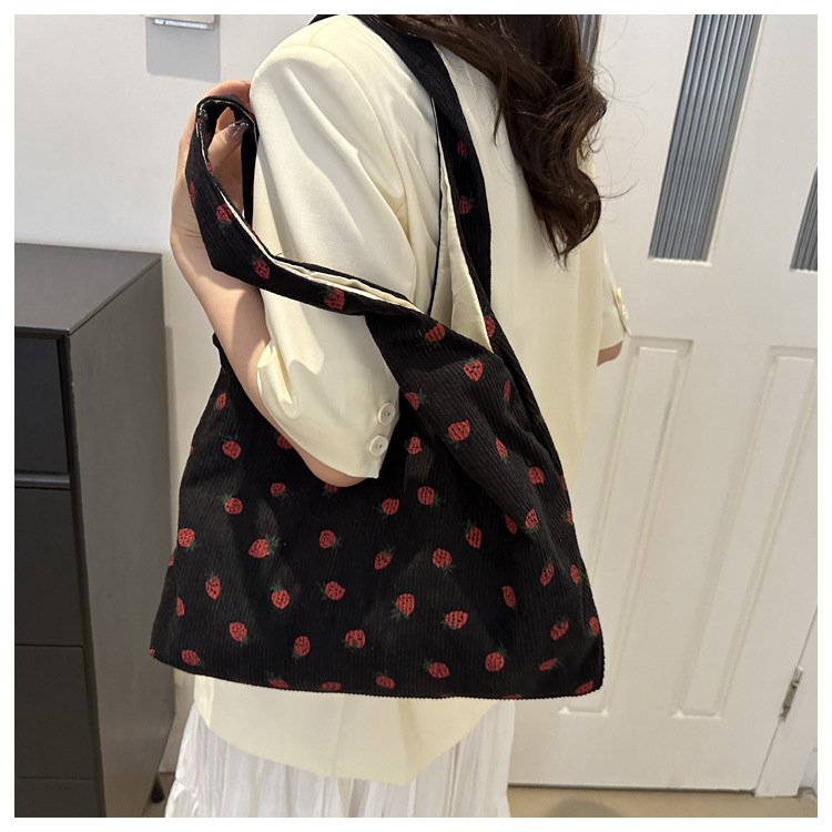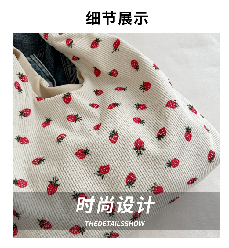 コーデュロイ布韓系小包女2024新ファッションいちごプリント携帯バッグinsカジュアルショルダーバッグ
