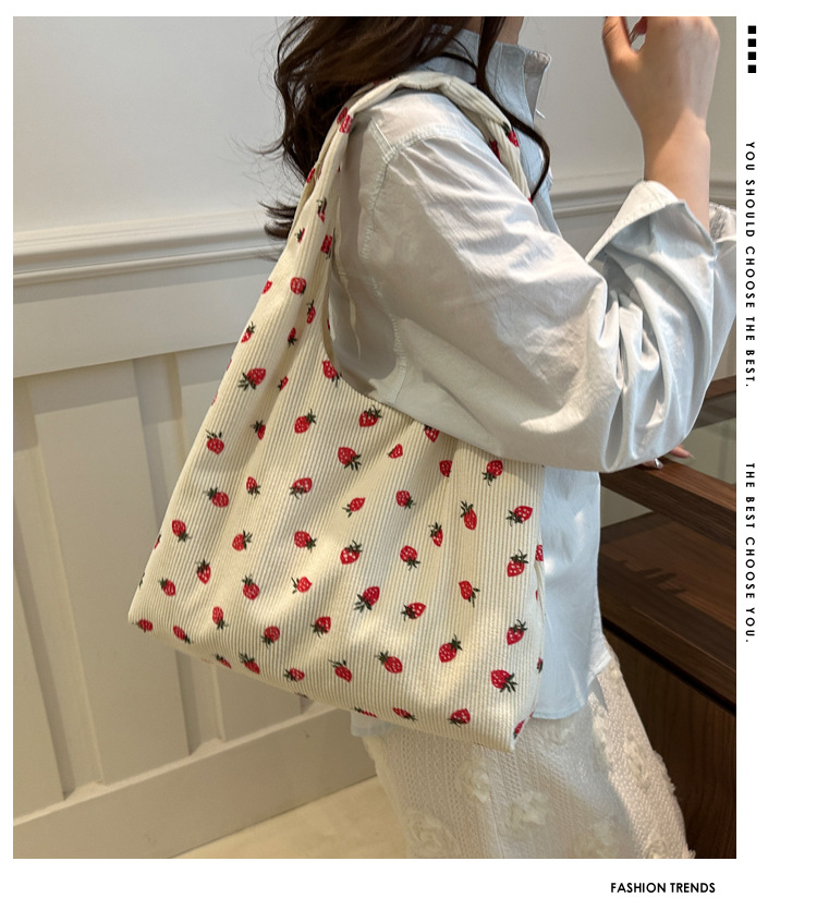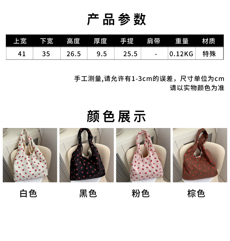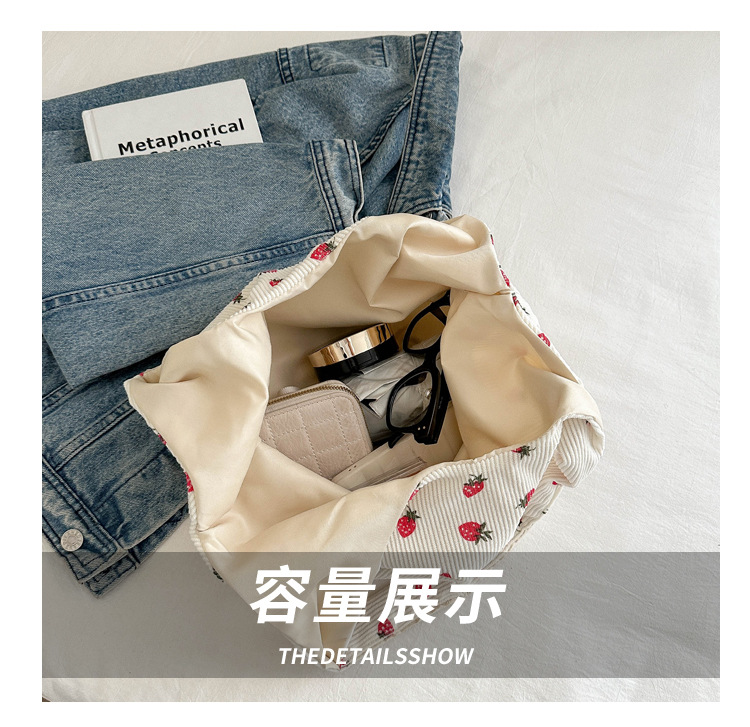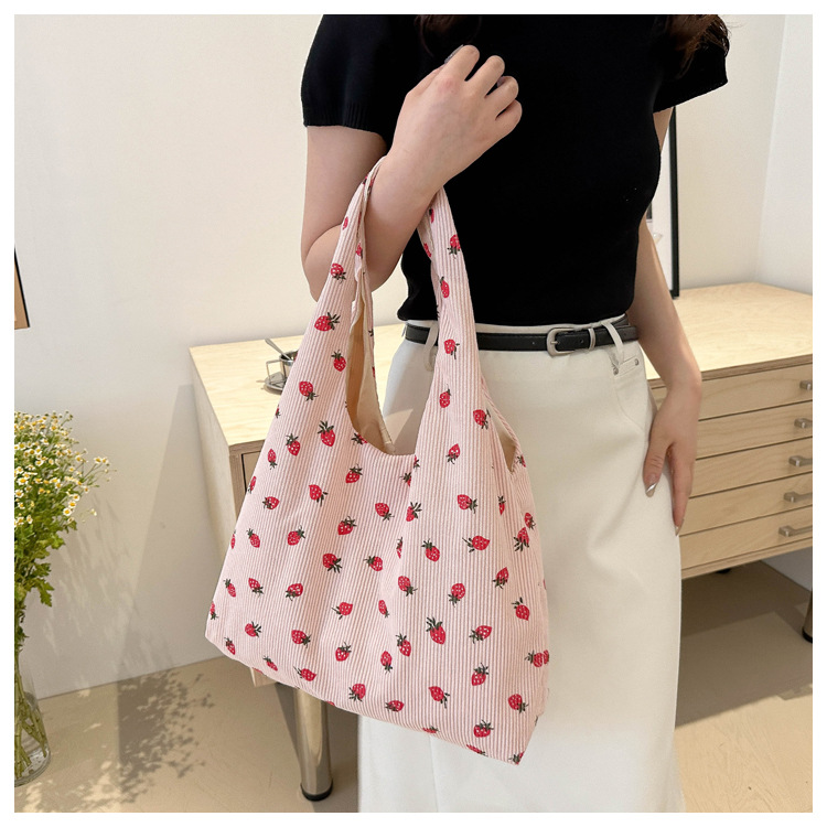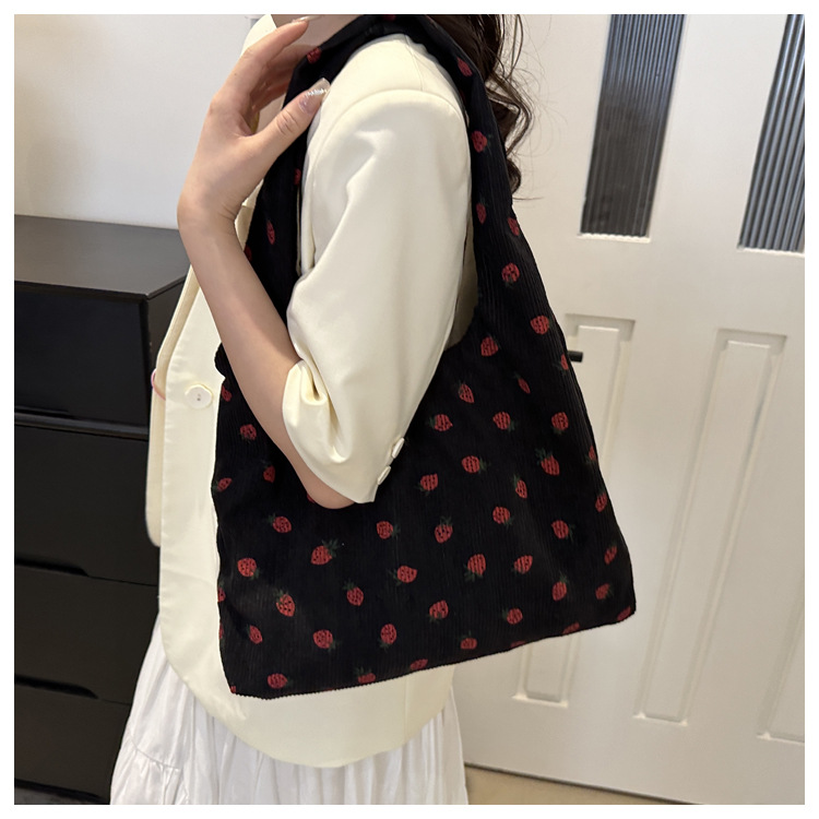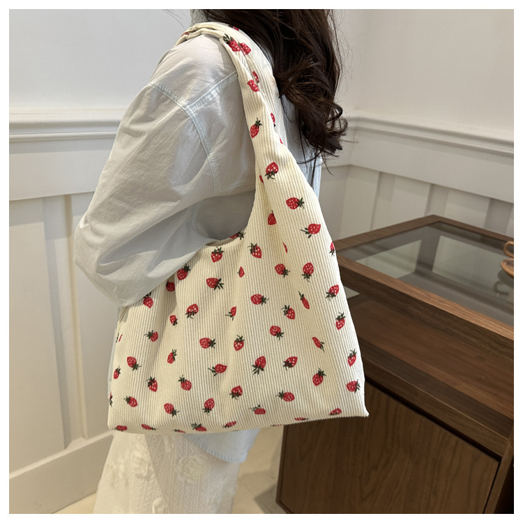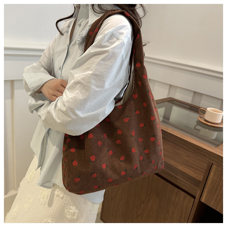 コーデュロイ布韓系小包女2024新ファッションいちごプリント携帯バッグinsカジュアルショルダーバッグ