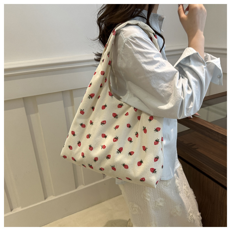 怠惰な風の大容量のコーデュロイのイチゴの包みの女性ins韓国版の原宿のショルダーバッグの学生の授業の特包