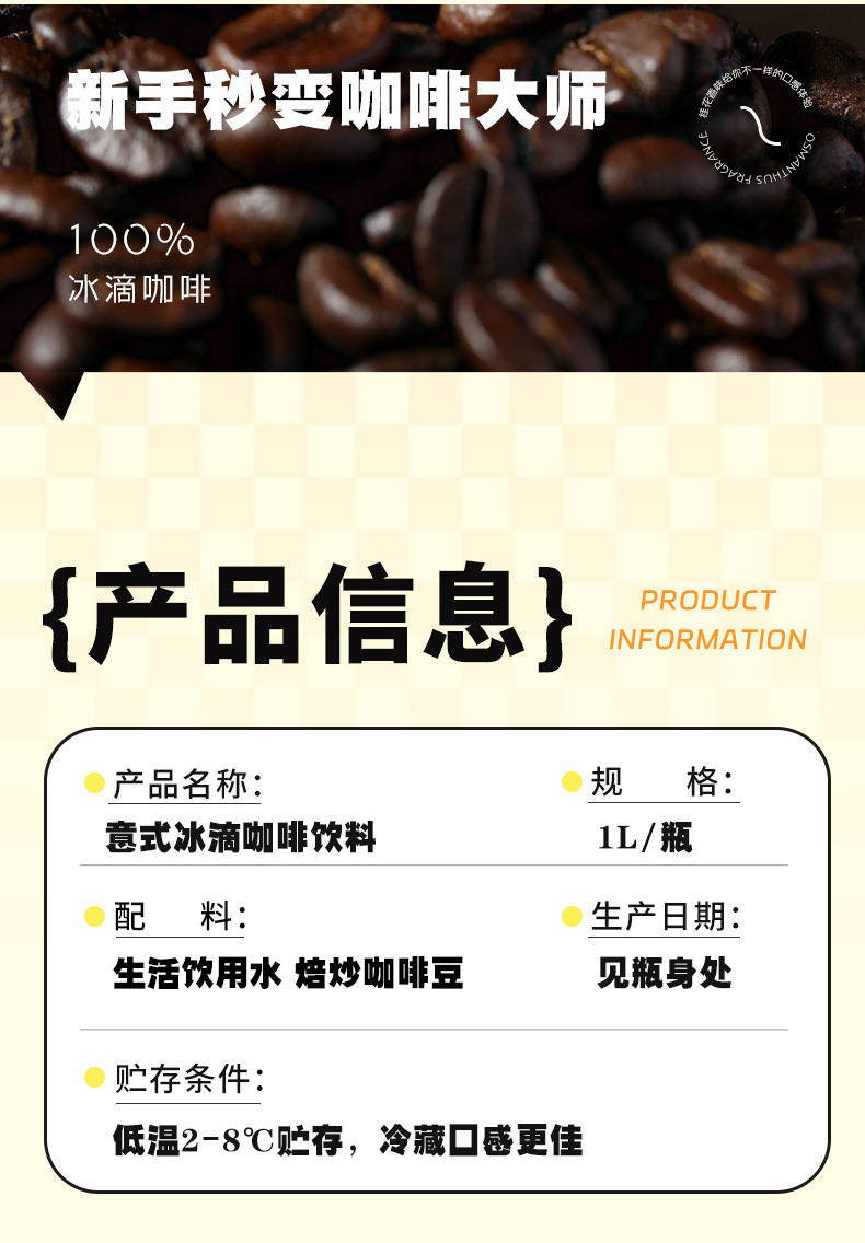 盾皇意式濃縮コーヒー液1lインスタントコーヒー黒コーヒー原液冷抽出氷滴コーヒー