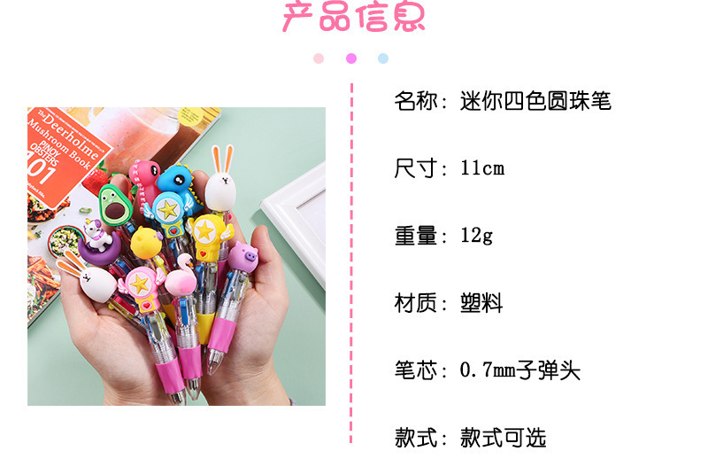 跨境迷你四色圆珠笔学生卡通按动笔高颜值手账圆珠笔文具小礼品