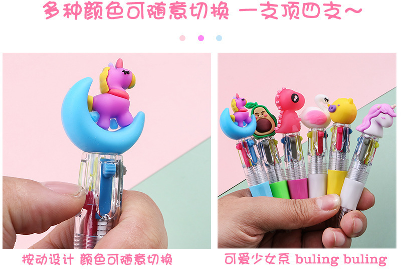 クロスボーダー専用ミニ四色ボールペンかわいいinsアニメ萌え色押しペン学生賞品卸売り