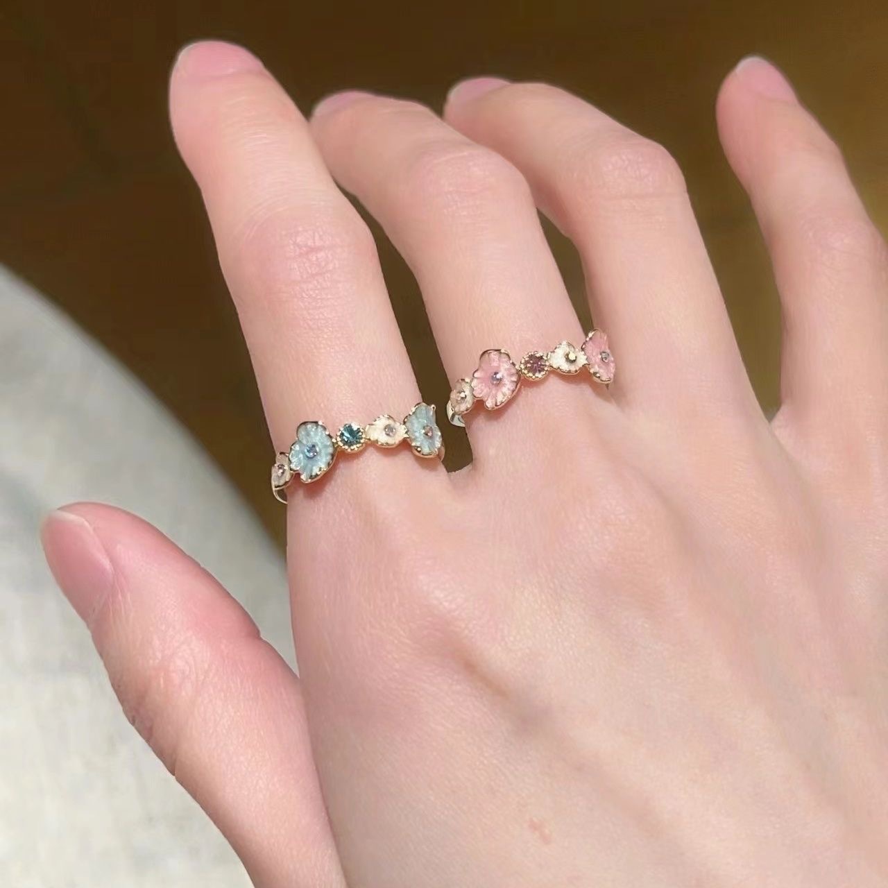 超仙の青い粉の花の指輪の女性の大衆は高級な新型の食事の指の指輪を設計します。