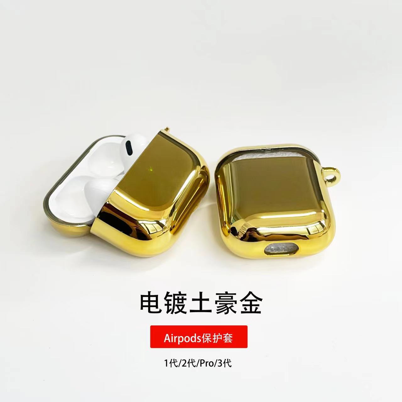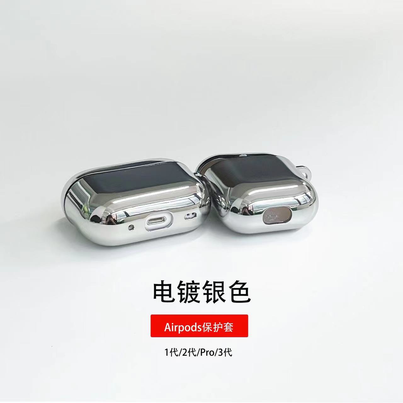 新款电镀TPU软壳银色亮面适用airpods pro2代3/4苹果耳机保护壳套