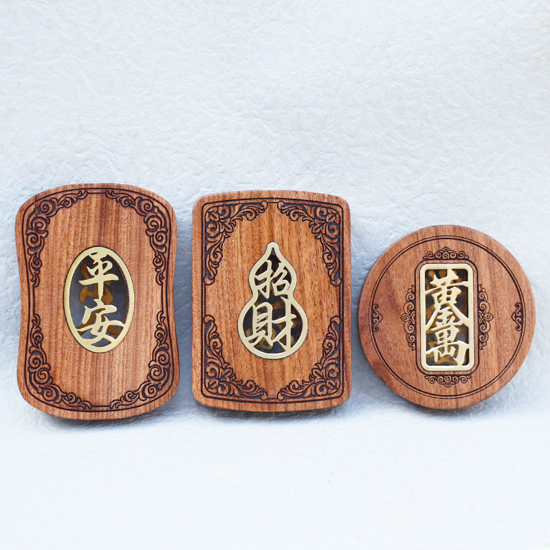 平安牌紫檀黒檀花梨木一路平安彩色絵diyアクセサリー車掛けペンダントキーホルダー