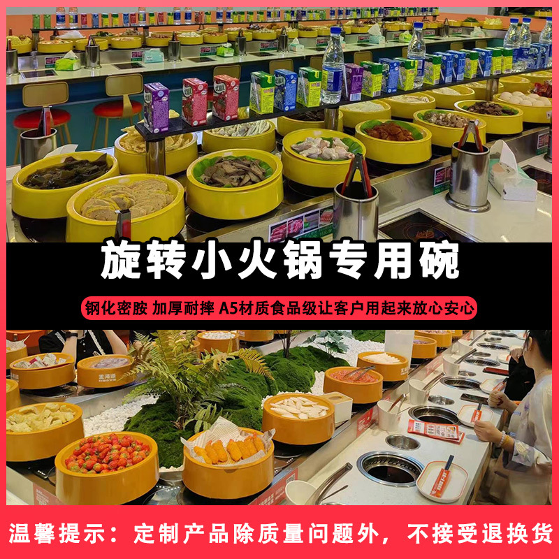 メラミンカラーセルフ回転小鍋業務皿回転碗火鍋店食器料理皿刺身皿卸売り