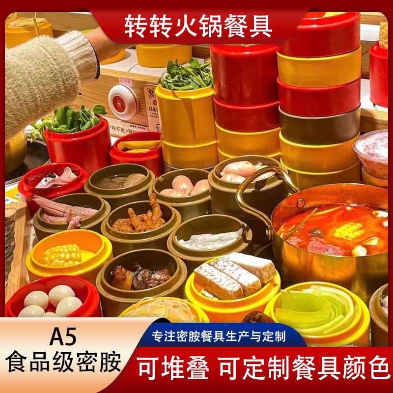 メラミンカラーセルフ回転小鍋皿鍋飲食店業務用食器二重料理皿回転碗バッチ