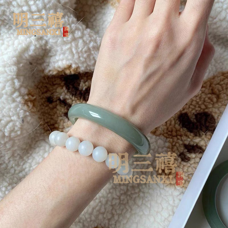 保真玉氷翠ブレスレット水墨丹青玉腕輪氷灰色ゴビ材女性金玉ブレスレットプレゼント卸売り