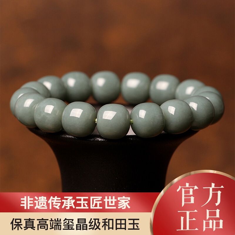和田玉湖水緑古青料アフガニスタン玉ブレスレット天然晴水料復古円条玉ブレスレット