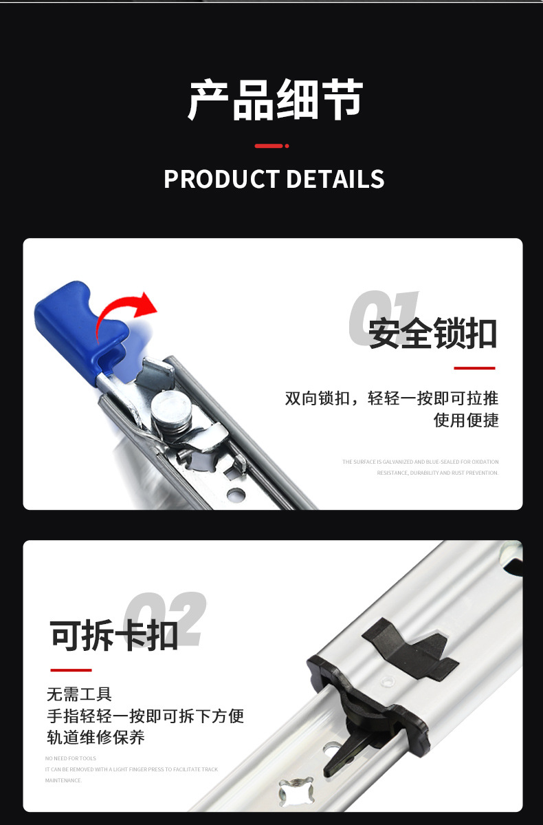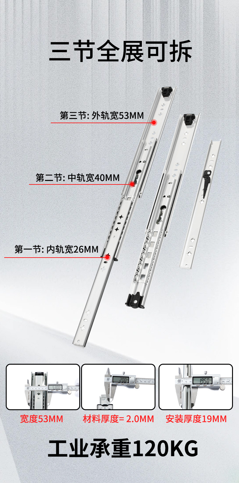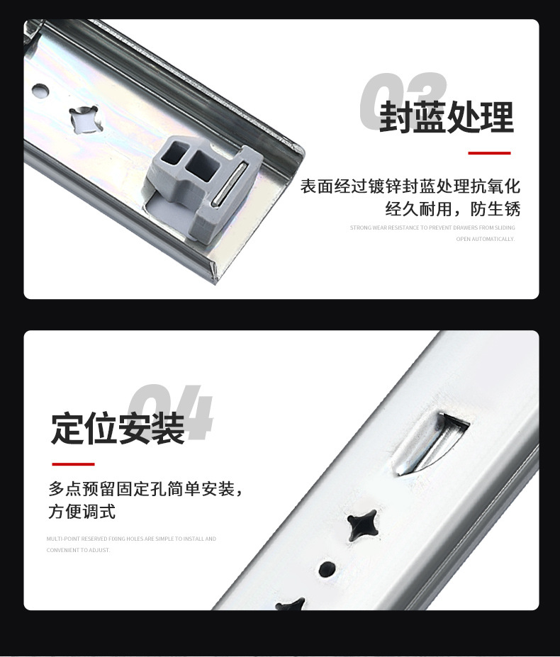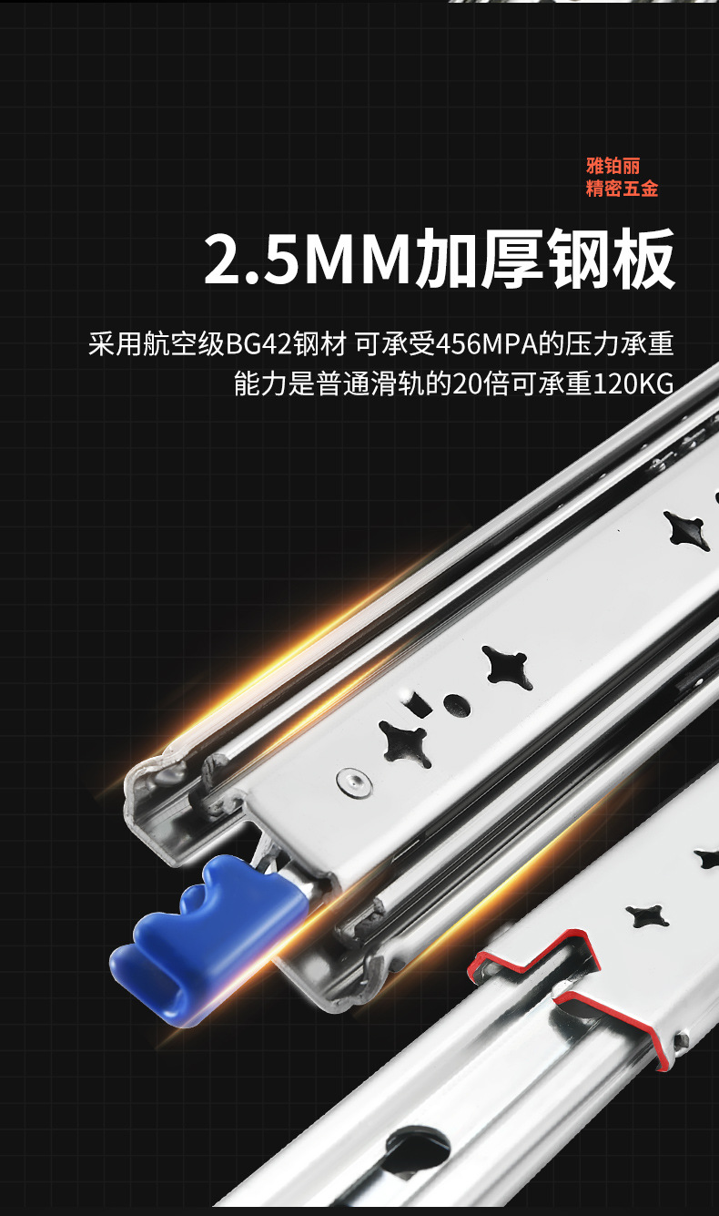 冷間圧延鋼製の厚みのあるスライドレール