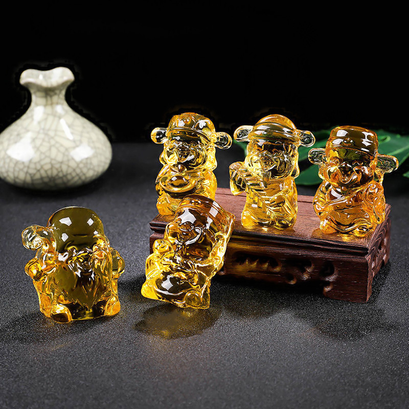 【淄博琉璃】五方財神様 家庭装飾 縁起物 クリスタル置物 精巧なデザイン 輸出専用