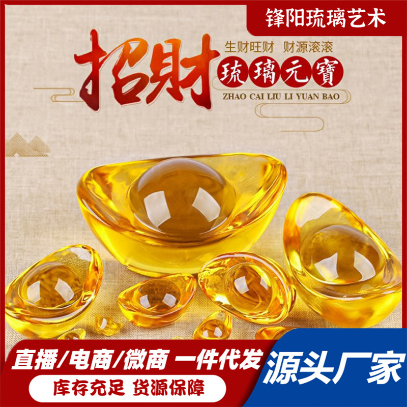釉薬をかけた金元宝の置物、クリスタル元宝、中国風の装飾品