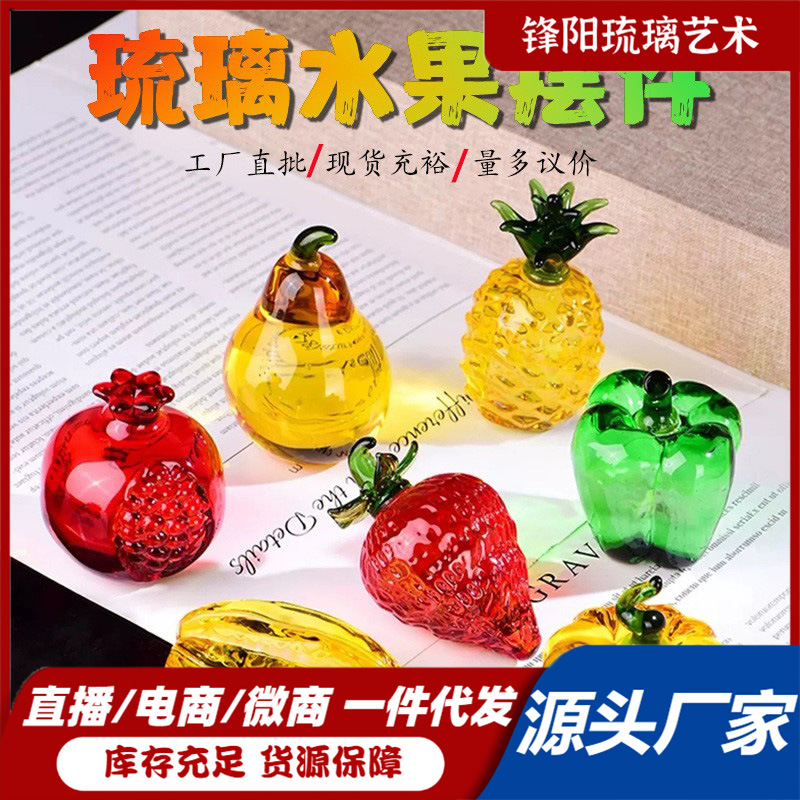 瑠璃かぼちゃ桃梨いちご小置物ミニホームオフィス装飾品水晶シミュレーション果物置物
