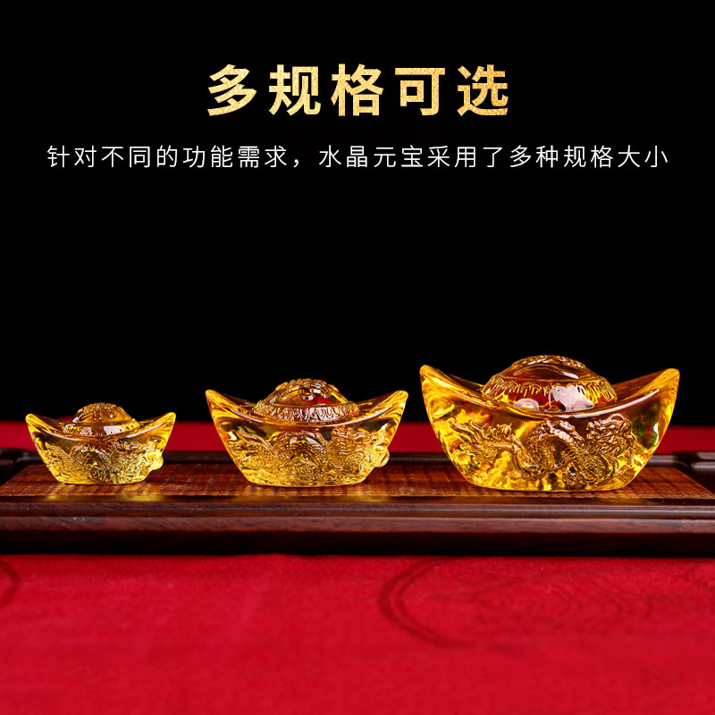 招財瑠璃の大きさの黄金元宝の家の宝盆の装飾の財神爺は水晶の福の字の元宝の置物を供えます。