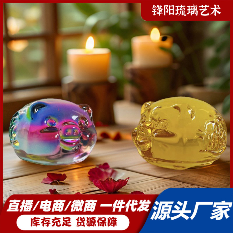 瑠璃十二生肖豚年誕生日プレゼント家庭用車載装飾開業招財プレゼント黄水晶豚置物