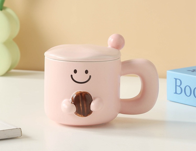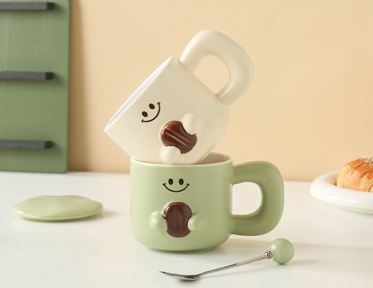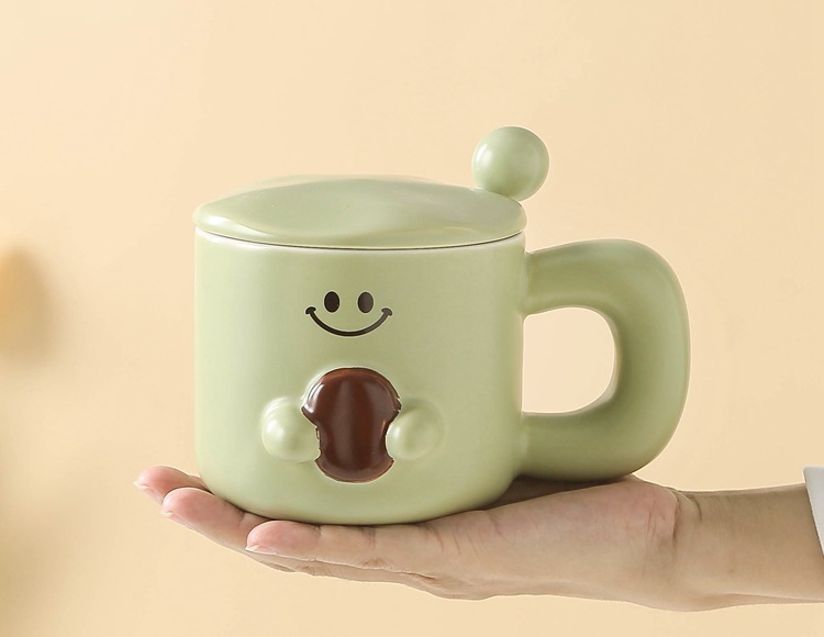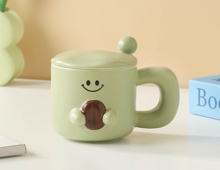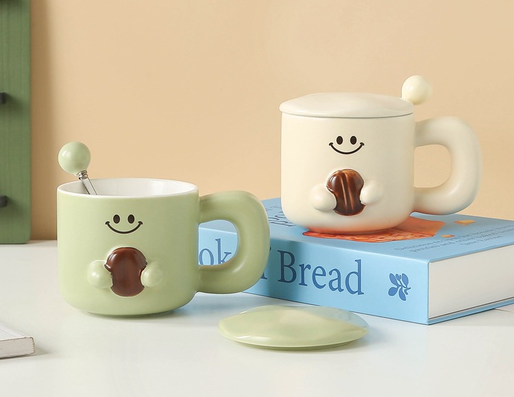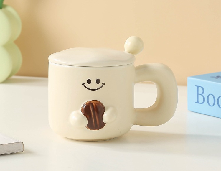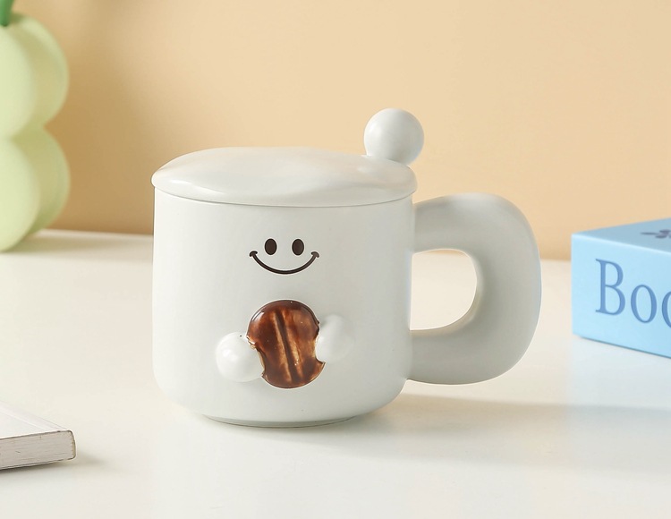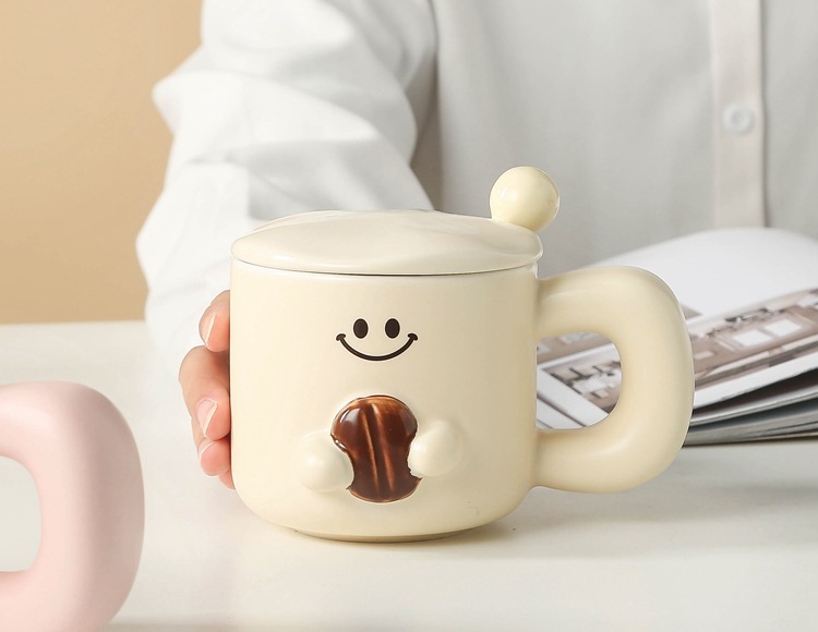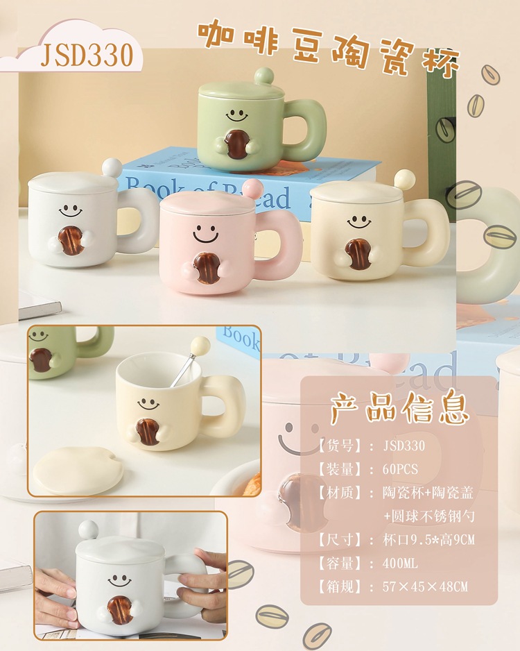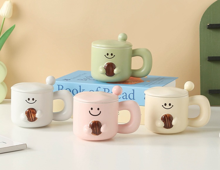 かわいいコーヒー豆笑顔マグカップデザイン感小衆オフィス蓋付きカップコーヒーカップ家庭用朝食カップ
