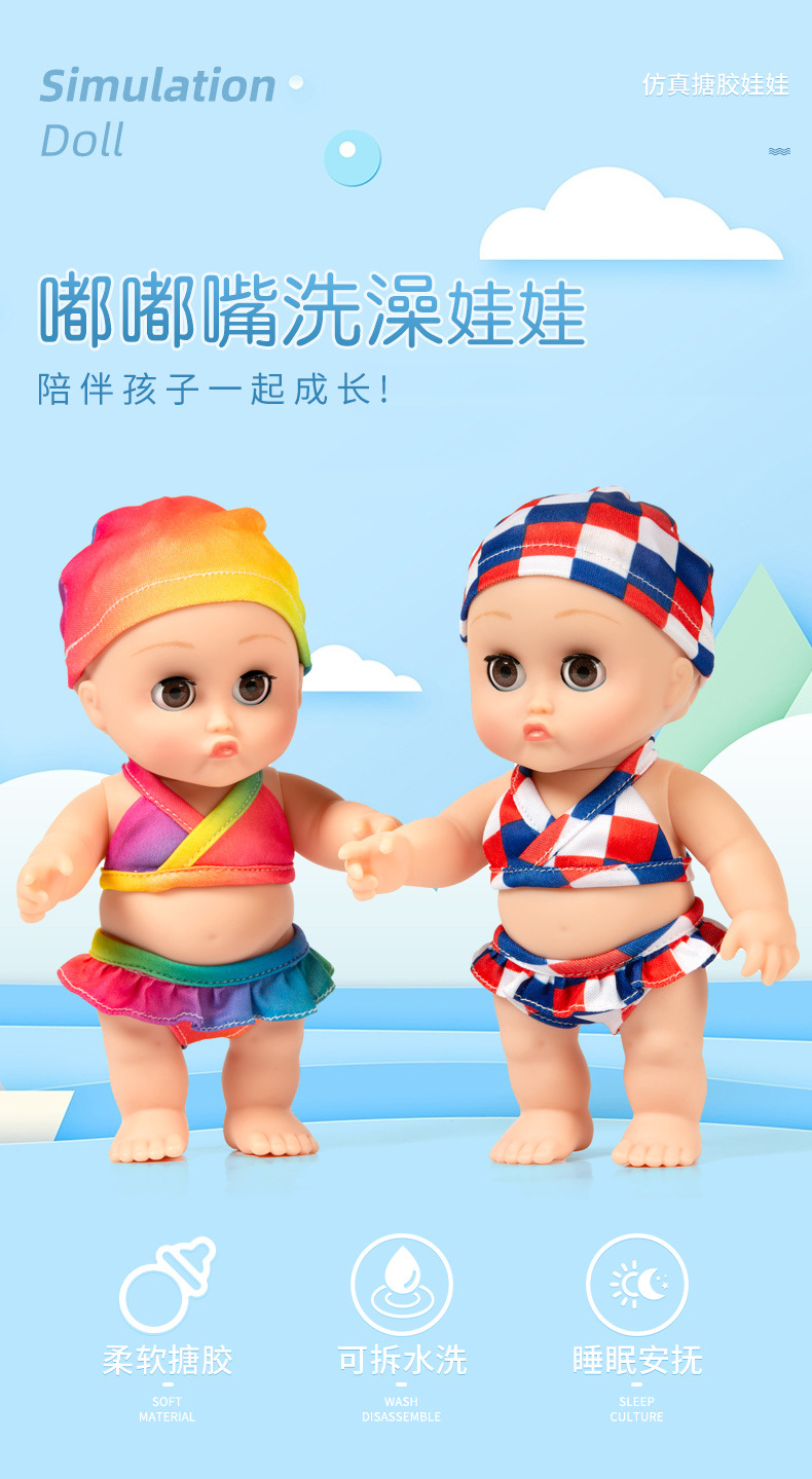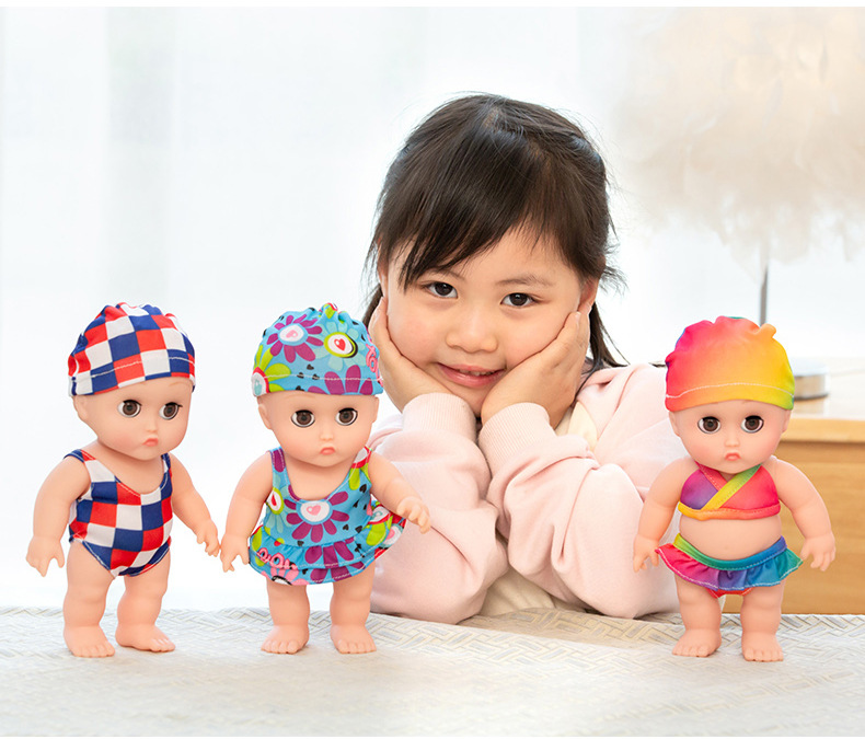 水着を着たおしゃれな人形、着せ替え可能なビニール製おもちゃ、赤ちゃんを落ち着かせるお風呂のおもちゃ