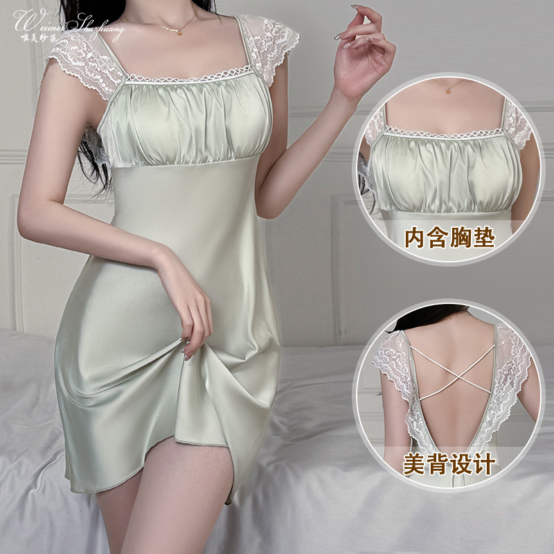 魅夫婦の新型パジャマの背もたれのリボンの家の服の純粋な欲の女性の低い胸の襟のガーターの睡眠のスカートの2126
