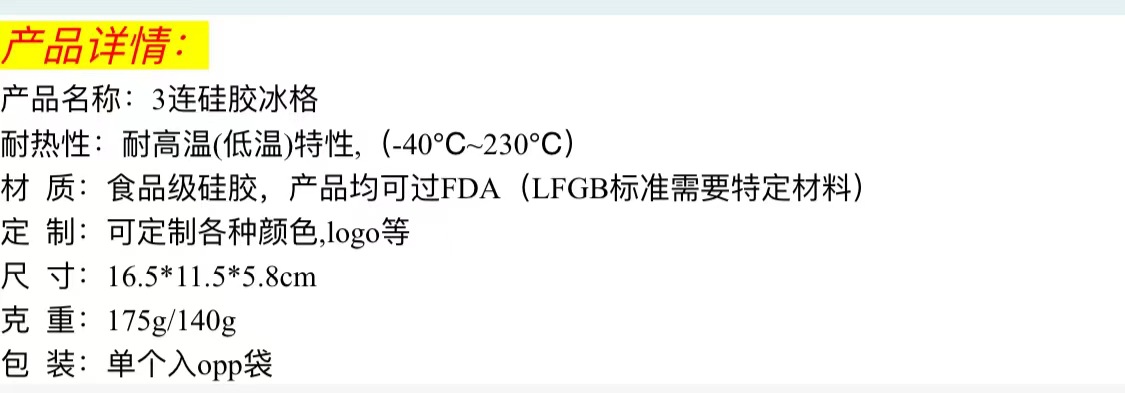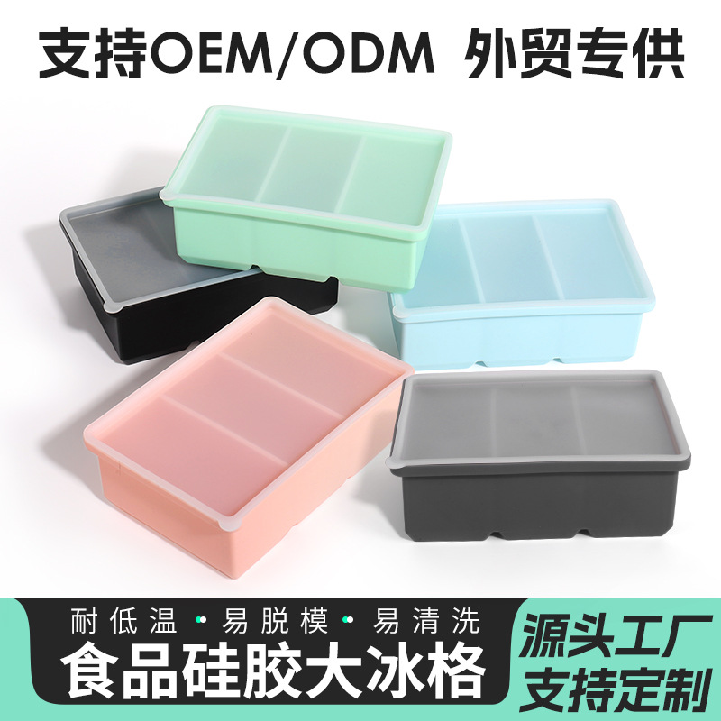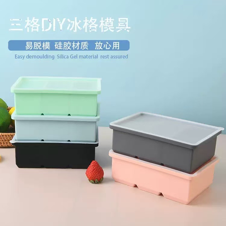 メーカー直供大サイズ3穴シリカゲル氷格蓋付きDIY創意三格氷格雪厨房製氷金型