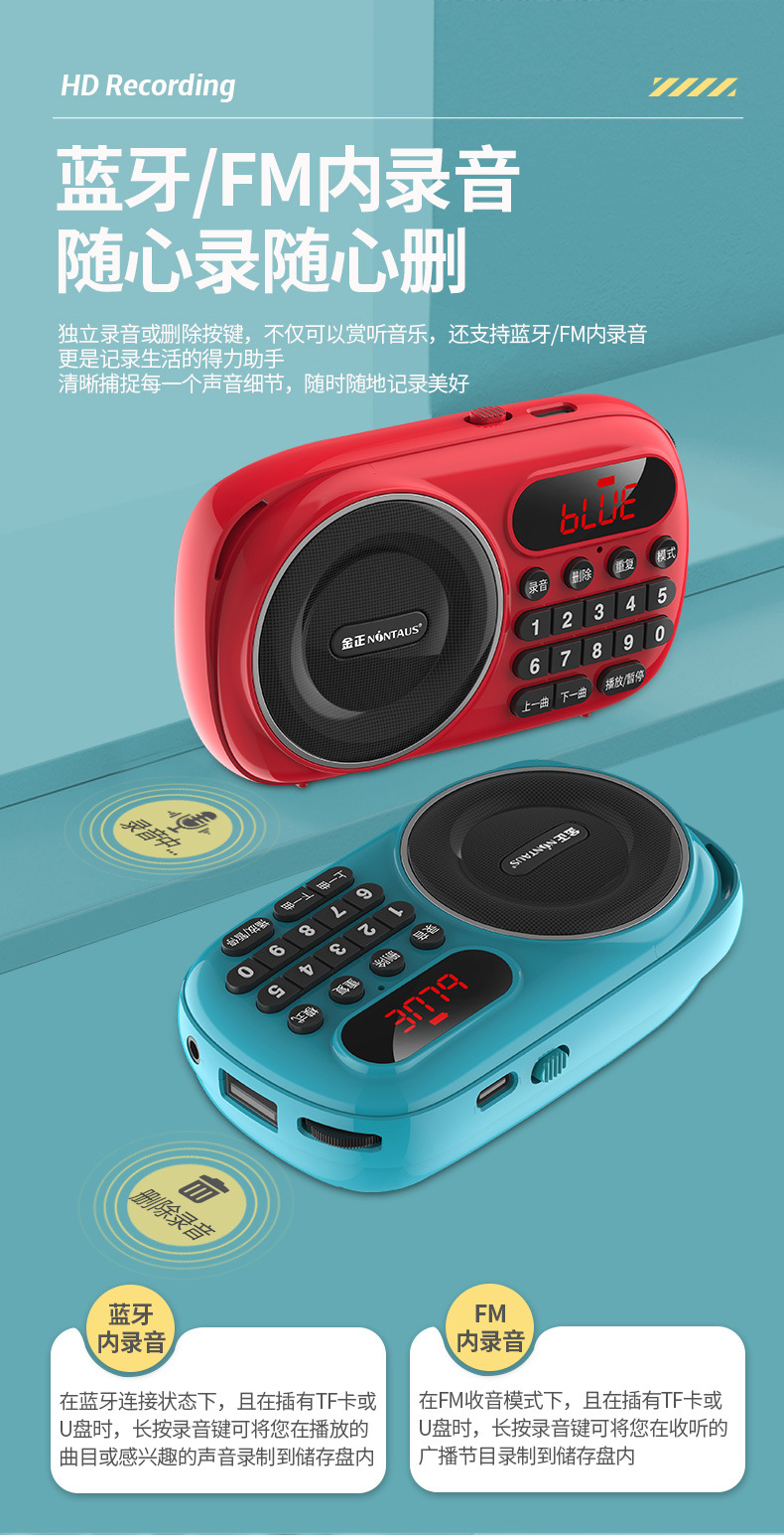 金正c 90定時シャットダウンbluetoothカードプレーヤー音楽歌手充電音楽MP3レコーダー
