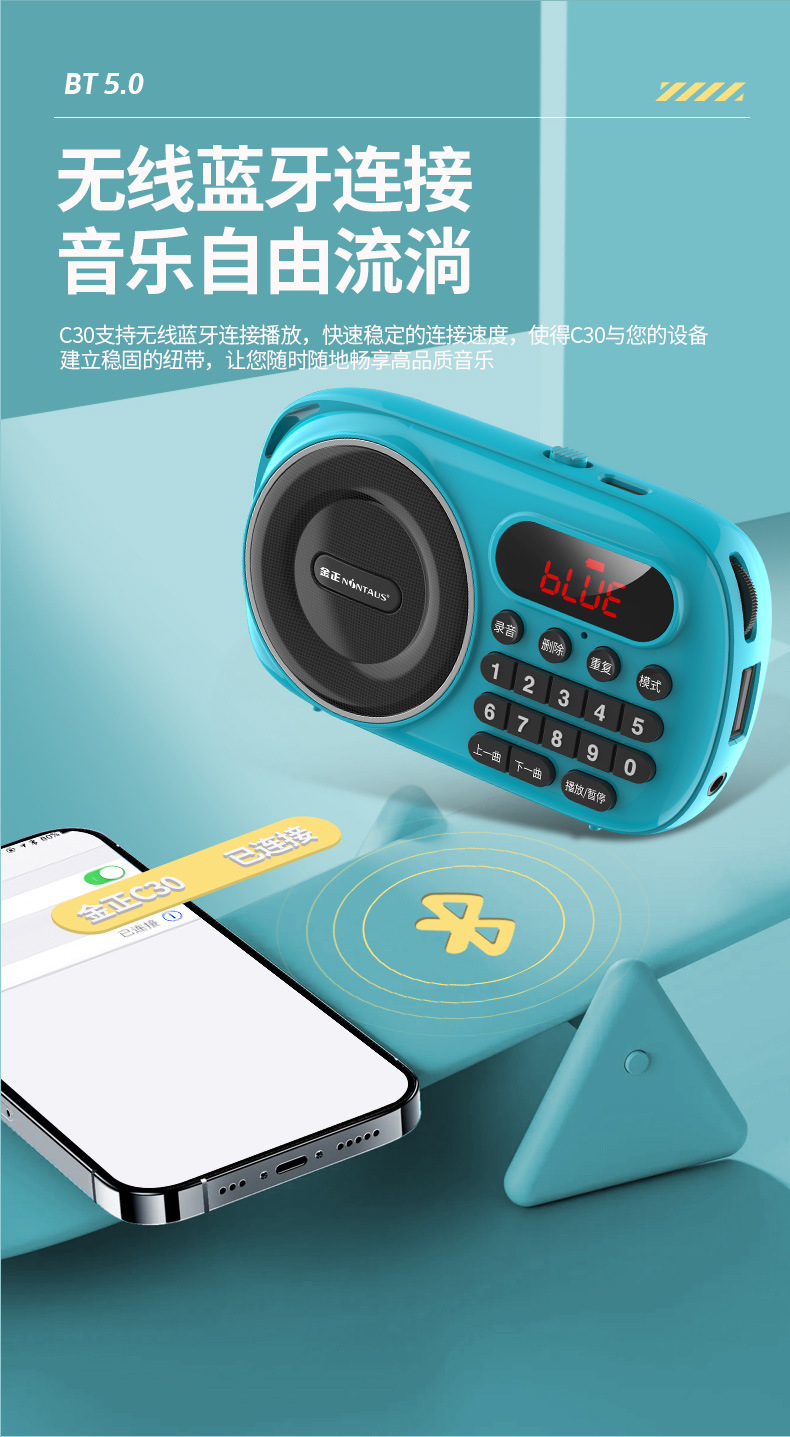 金正c 30ブルートゥースラジオ老人カードuディスクスピーカーmp3音楽プレーヤーは内録してダウンロードして放送することができます。