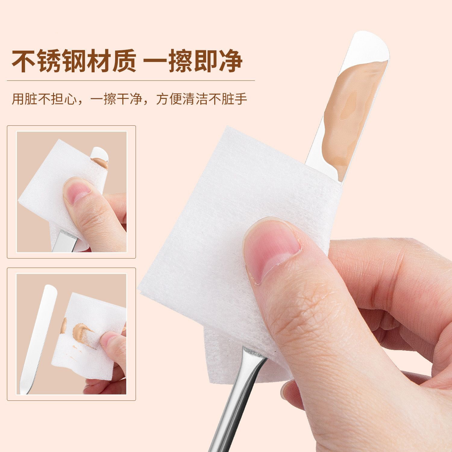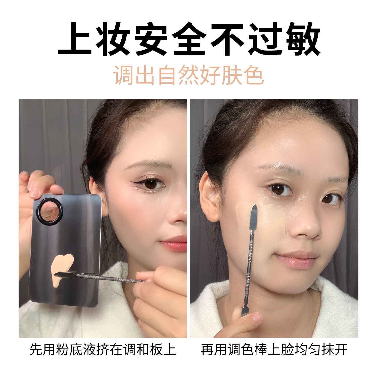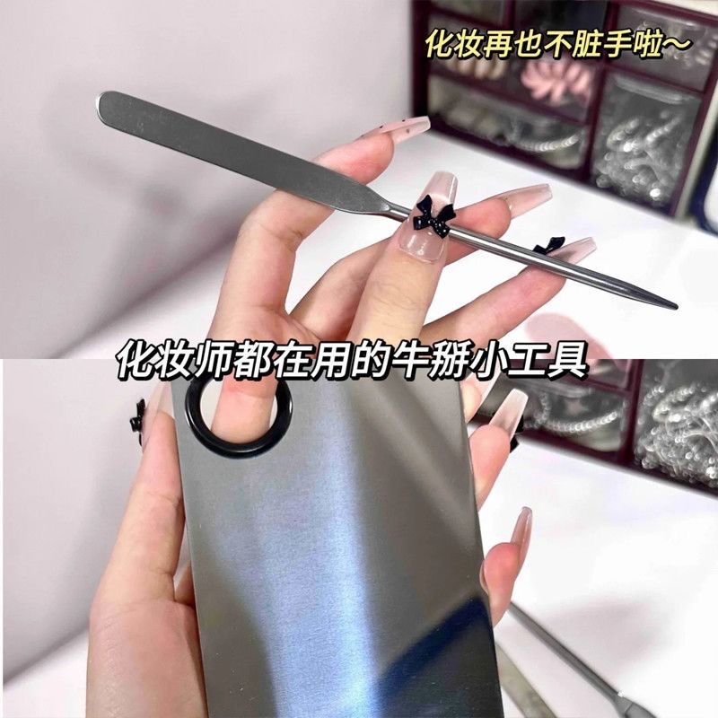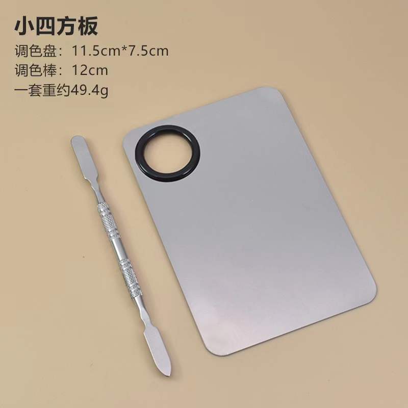 彩妆调色板一字粉底刷化妆刷粉底液调色板不锈钢专业调色盘调色棒
