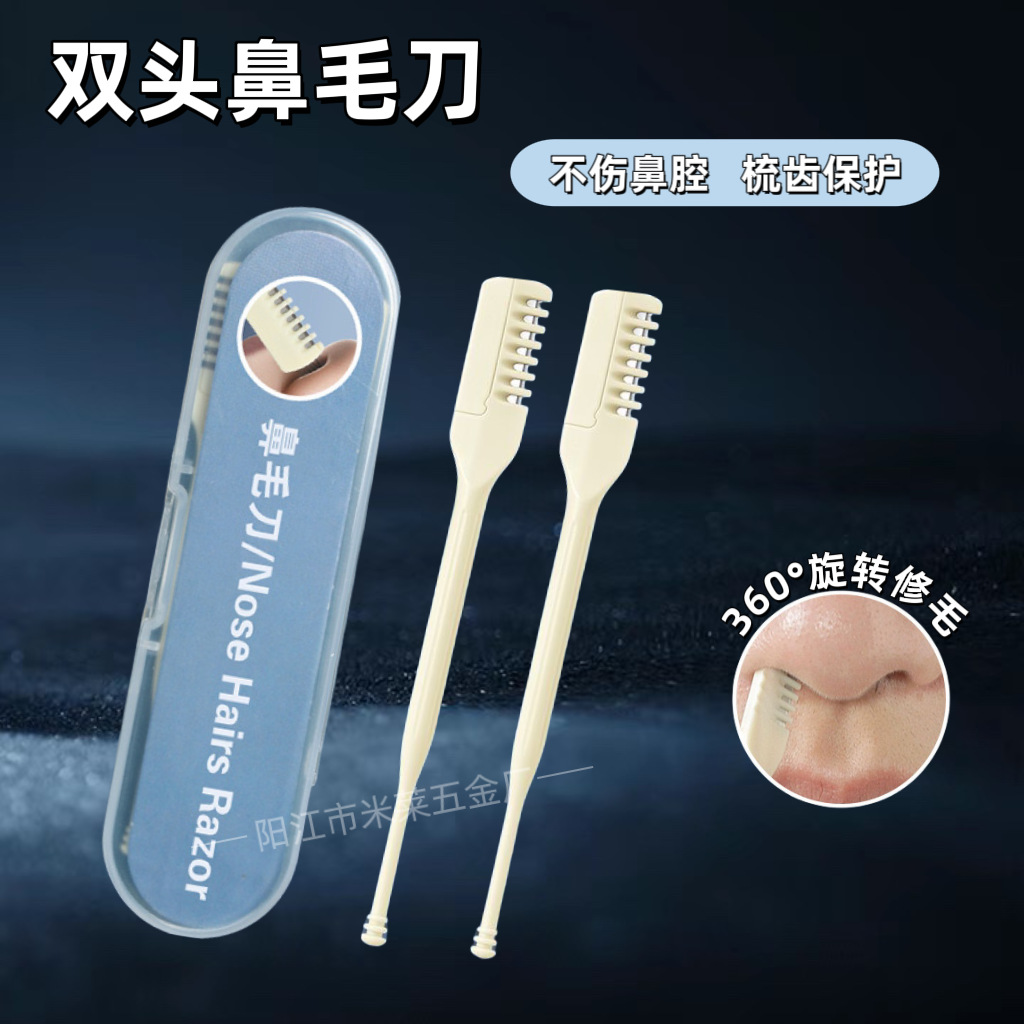 現物の二頭鼻毛刀ステンレス男性は手動で鼻毛を掃除します。
