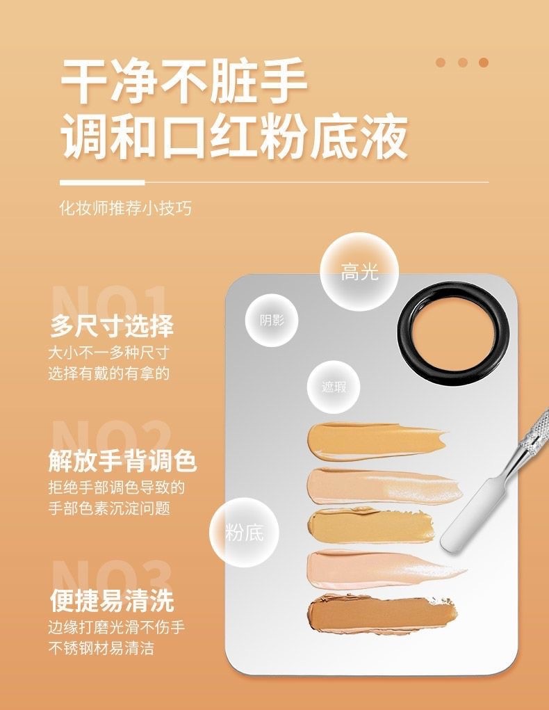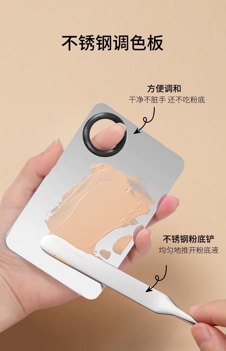 彩妆调色板化妆品粉底液遮瑕膏指环不锈钢专业调色盘带棒定妆