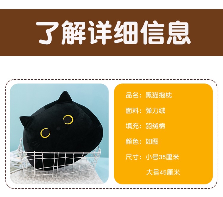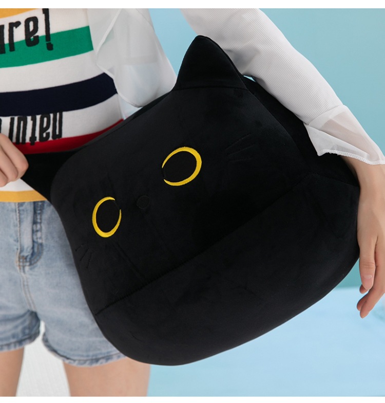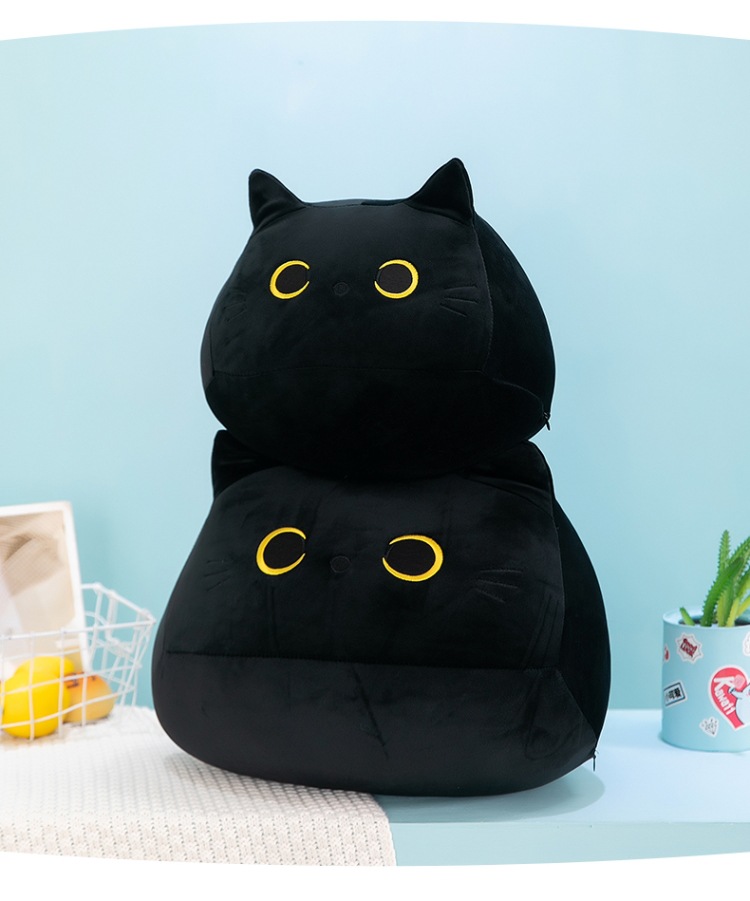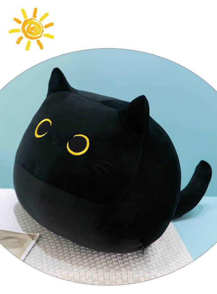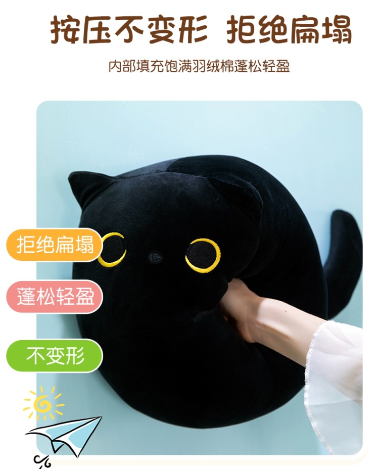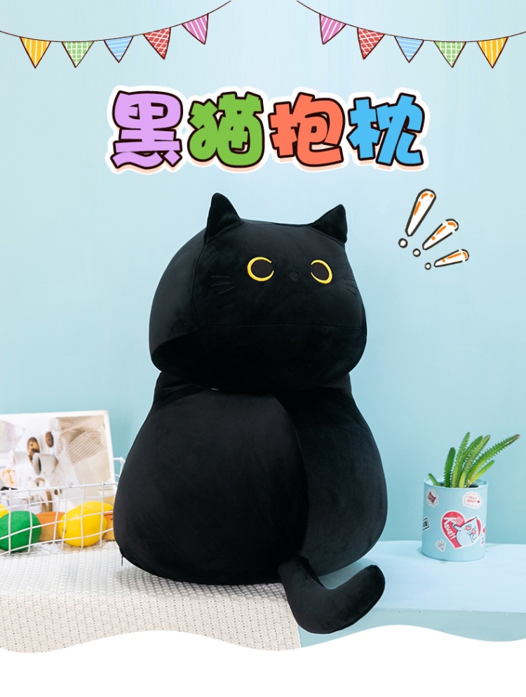 クロスボーダーぬいぐるみかわいい黒猫形抱き枕ぬいぐるみ柔らかい男の子ぬいぐるみ猫人形角昼寝枕