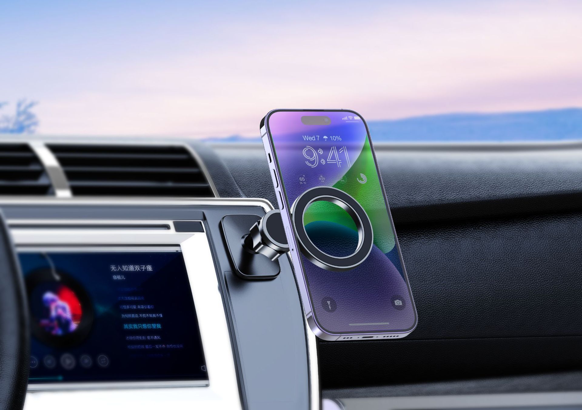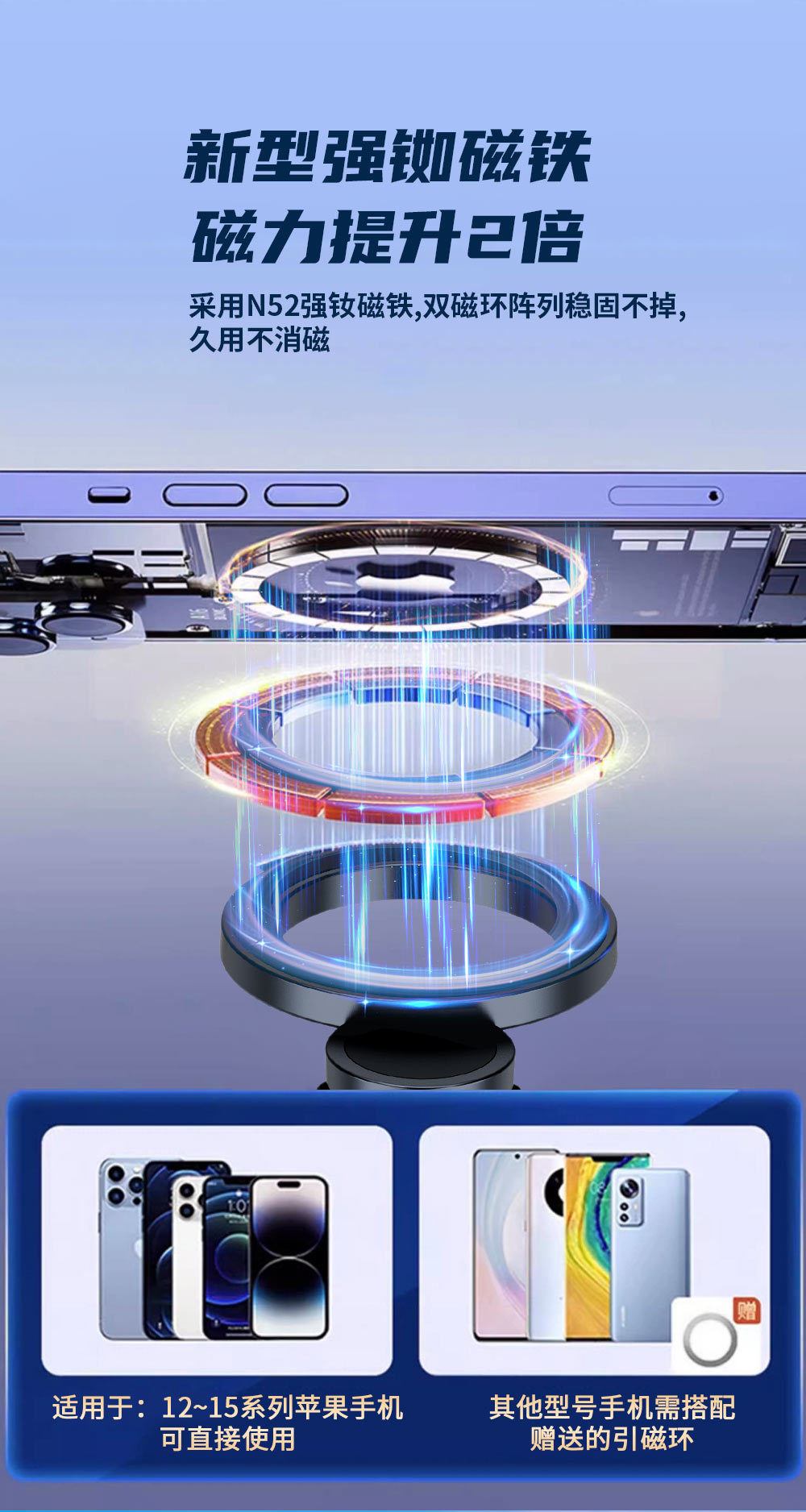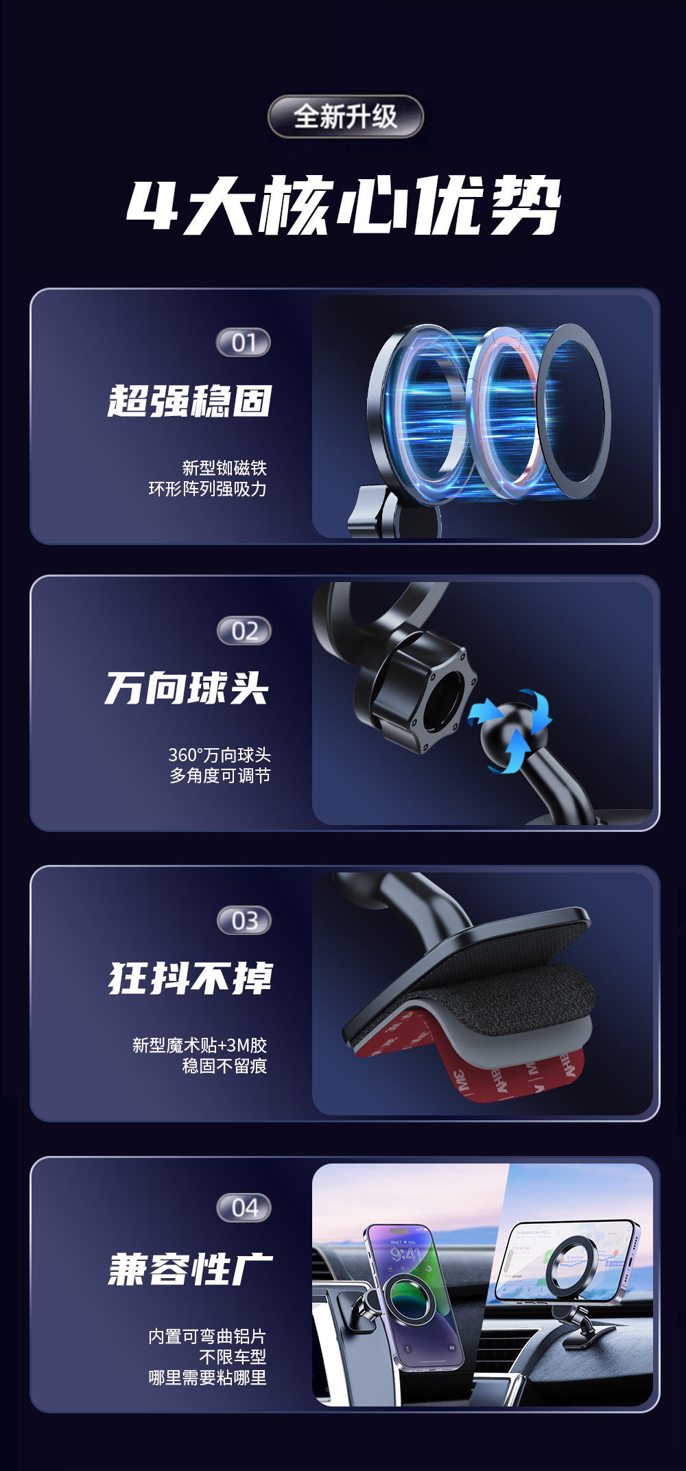 跨境新款磁吸车载手机支架360度Magsafe旋转可伸缩适用新能源汽车