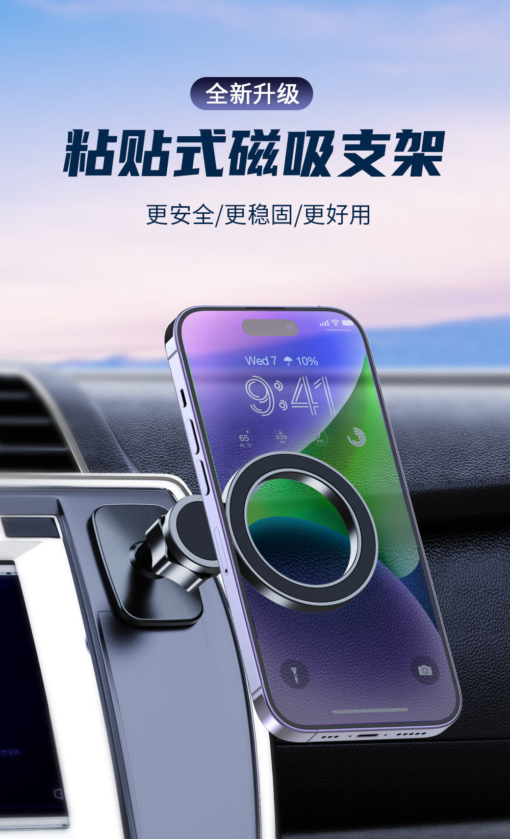 新款手机磁吸支架旋转可折叠双面吸支架吸盘式车载真空吸附支架