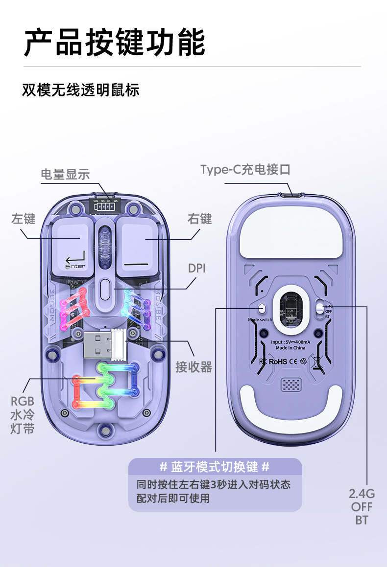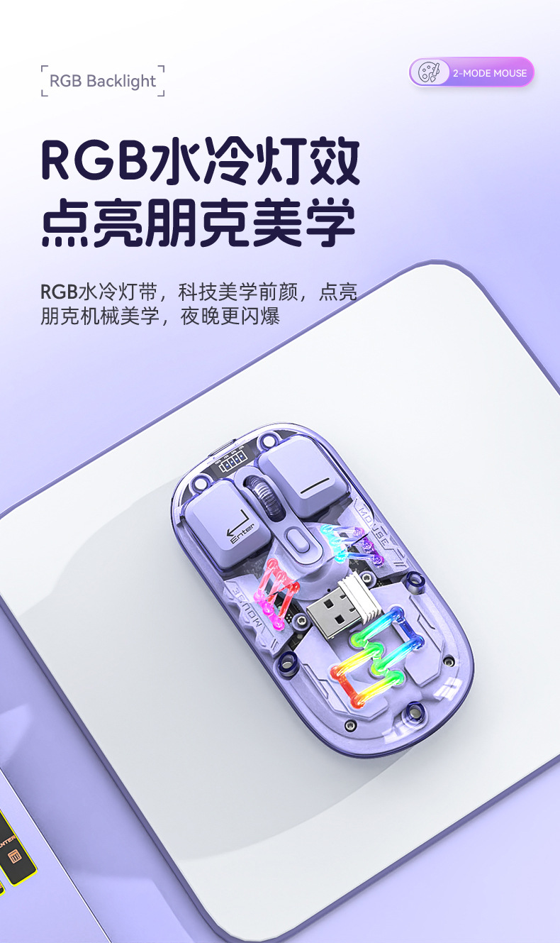 T9 リアクター ワイヤレス透明充電デュアル モード RGB 人間工学に基づいた Bluetooth マウス