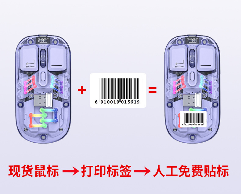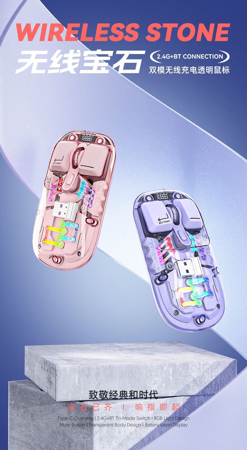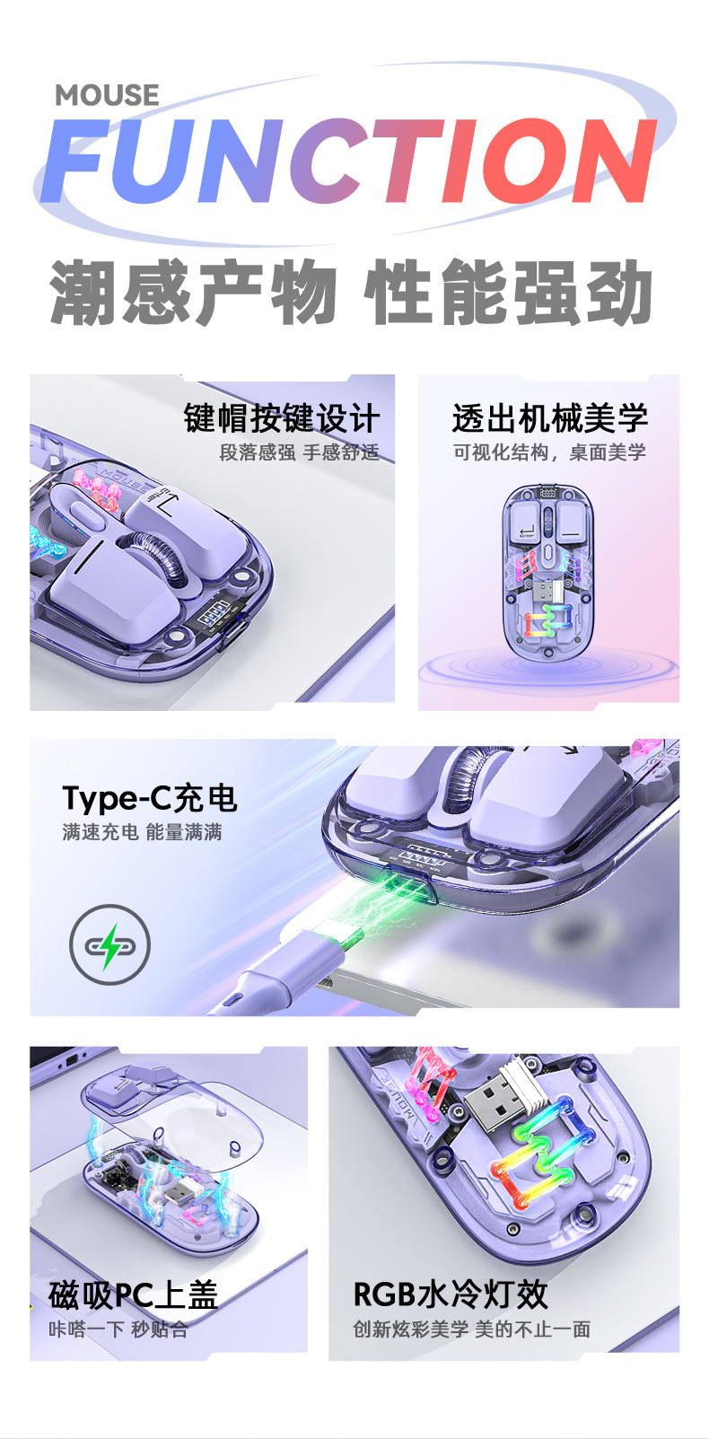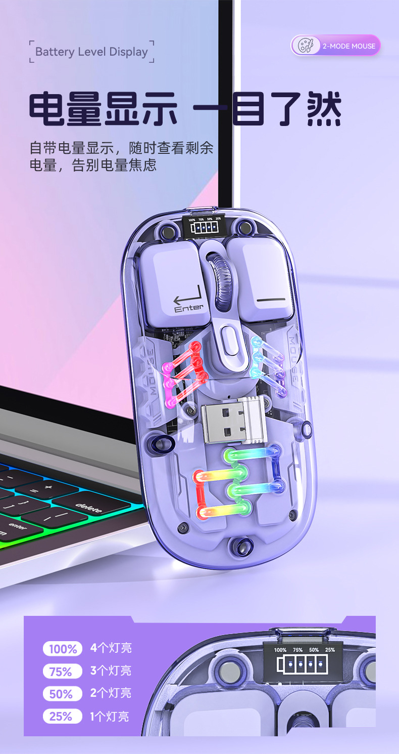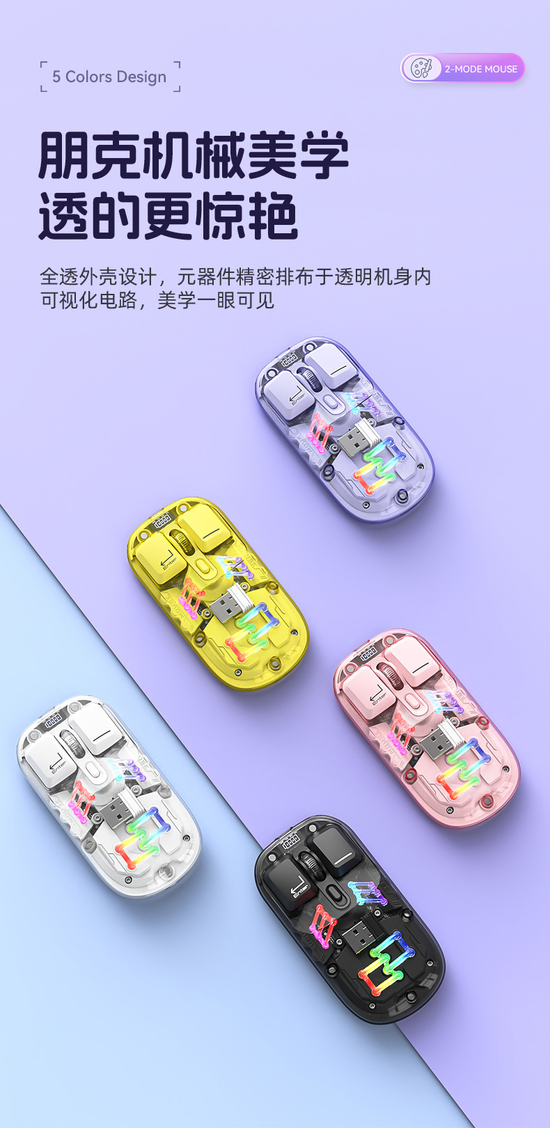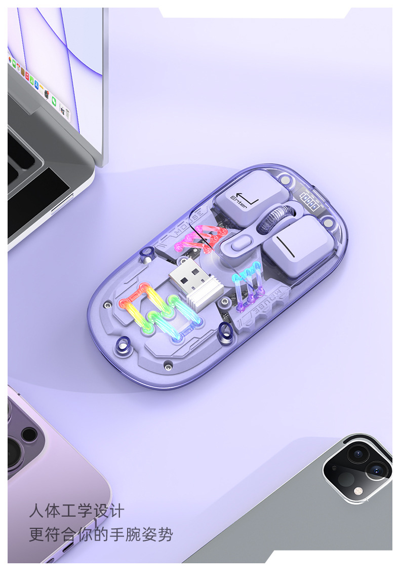 クロスボーダーQH210透明ミュートマウス連名タイプワイヤレス充電デュアルモードRGB人間工学bluetoothマウス