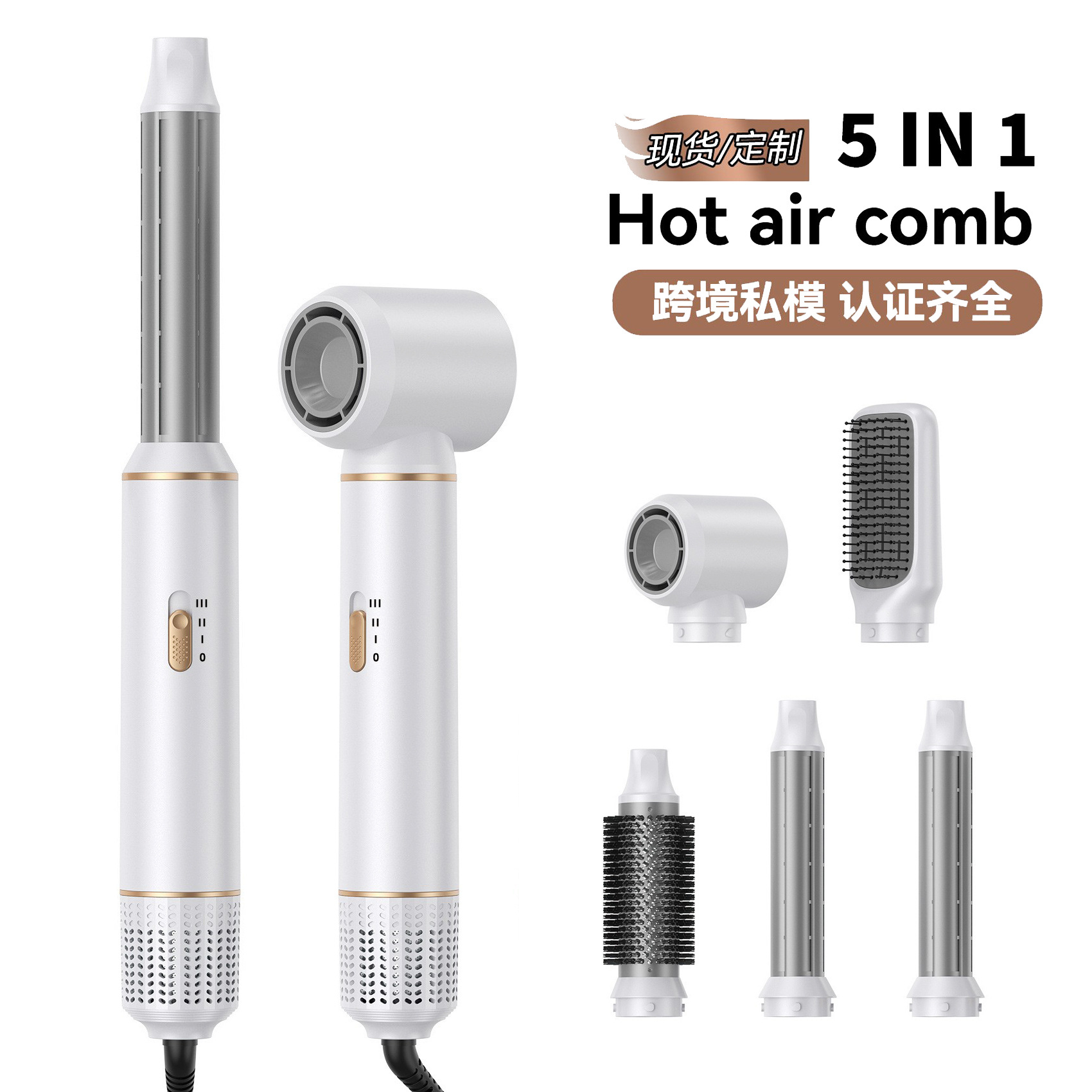 跨境新品五合一热风梳卷直两用吹风梳空气造型卷发棒多功能电吹风