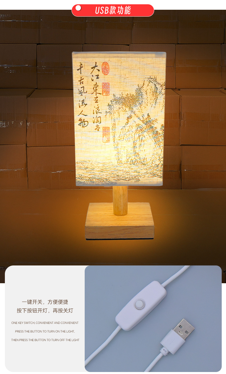 実木布芸usb小電気スタンド寝室ベッドヘッドランプ書斎民寮led小夜灯創意雰囲気ランプ装飾