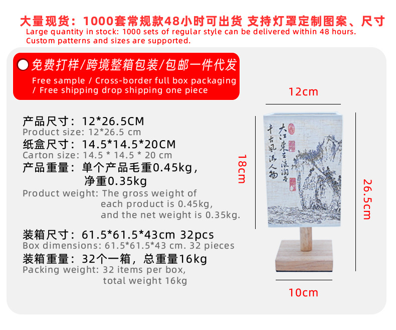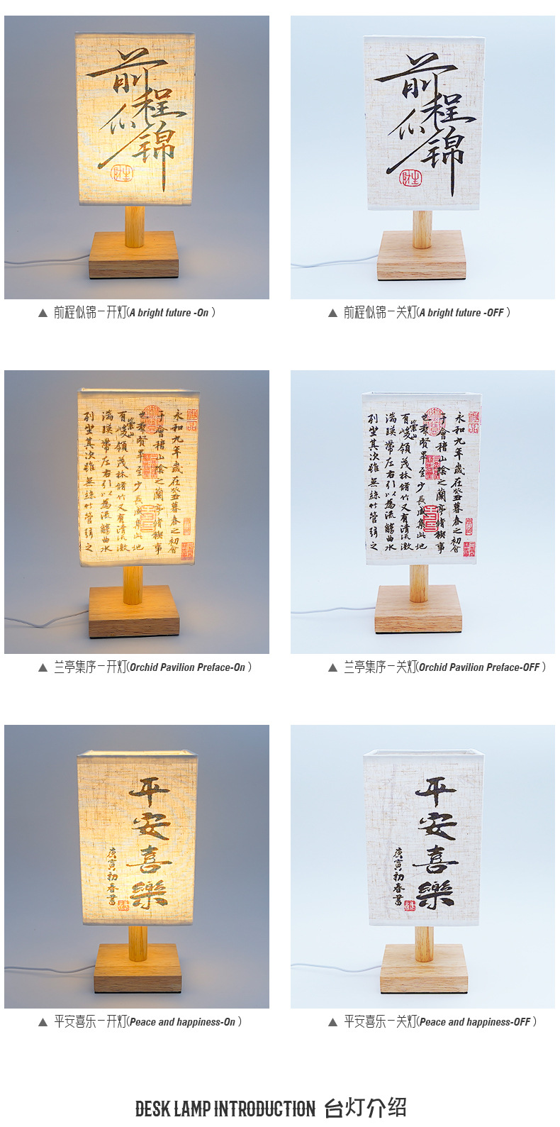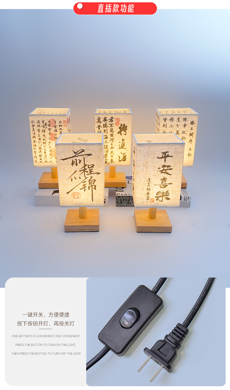 古風の寝室の四角形のベッドのヘッドライトの電気スタンドの新しい中国式のネットの赤い少女のアイデアの手作りのDIYの書道の小夜の明かり