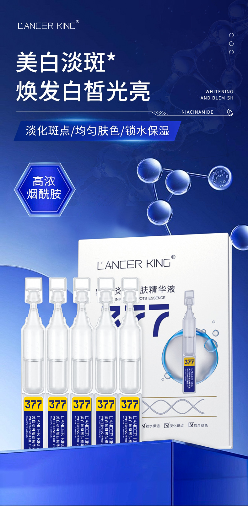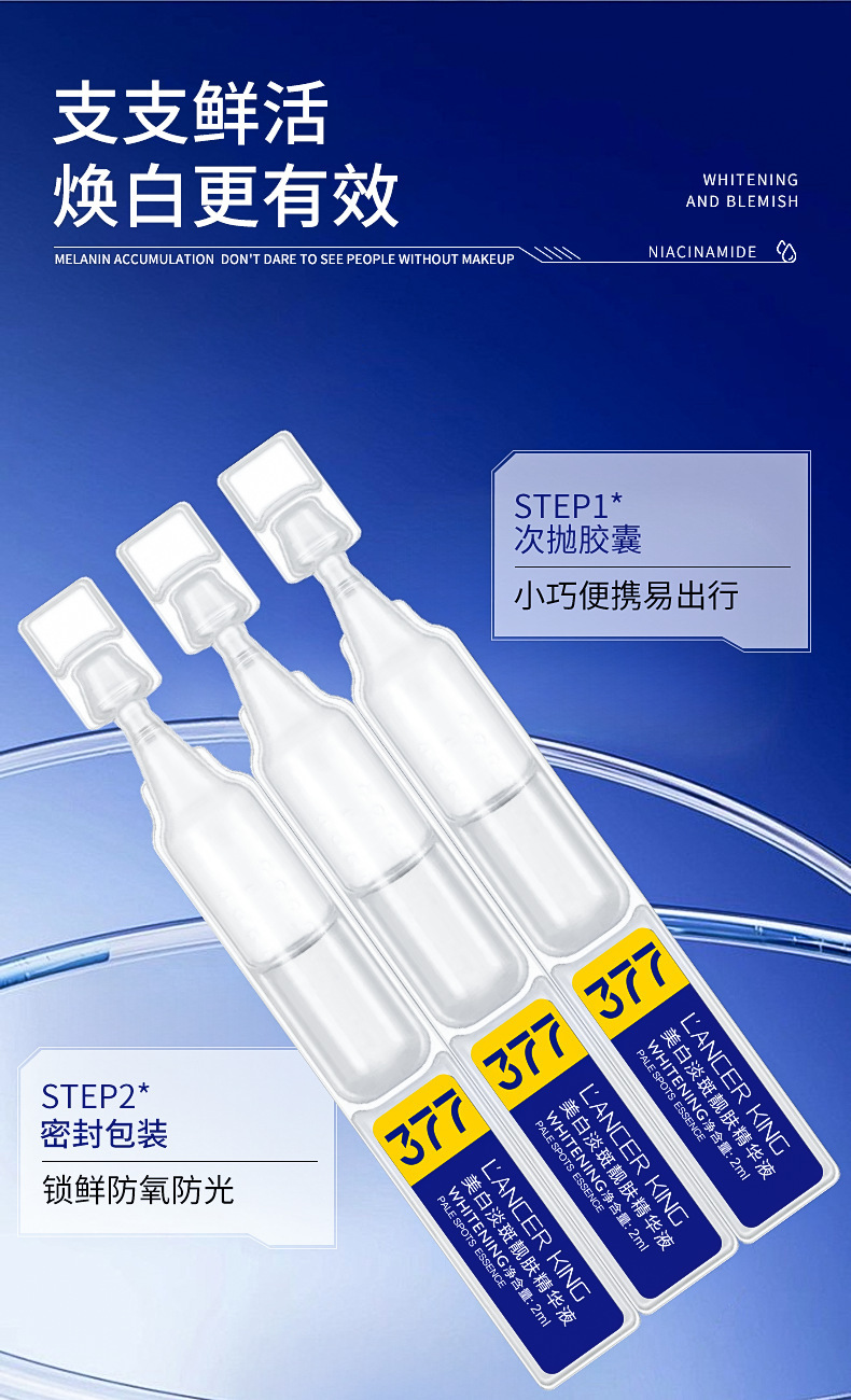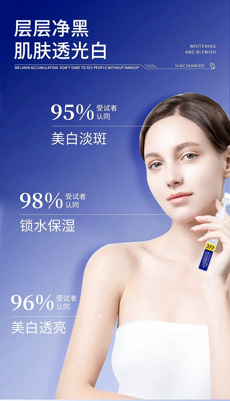 377美白淡斑靓肤次抛精华液女士补水保湿烟酰胺精华液批发