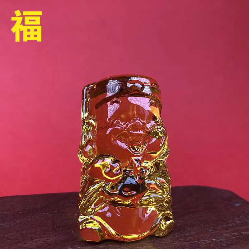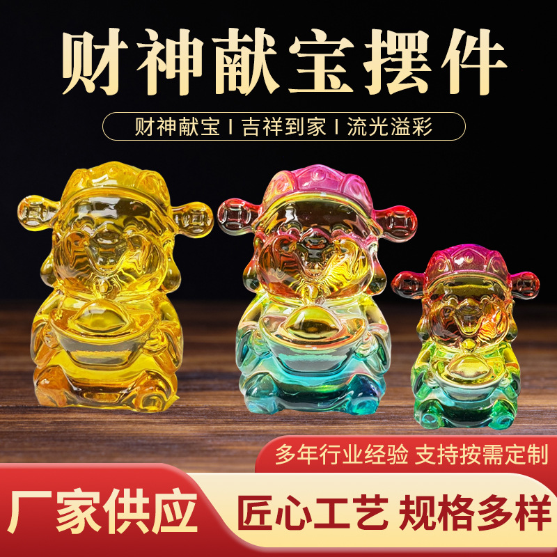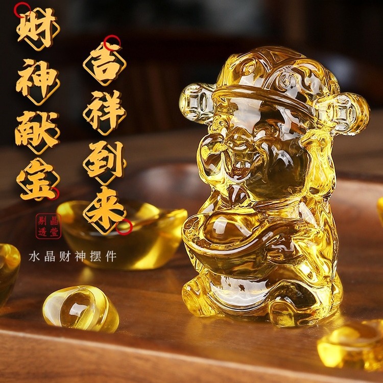 大福財神像瑠璃水晶置物家庭装飾財神爺公司開業招財工業品贈答品