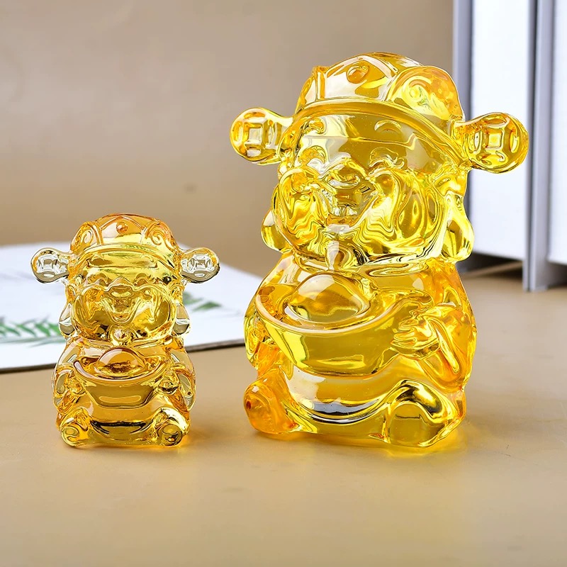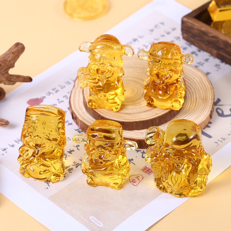 五方財神のガラス工芸品、家庭用装飾品、オフィスギフト、福禄寿喜財のクリスタル元宝置物、イエロークリスタル