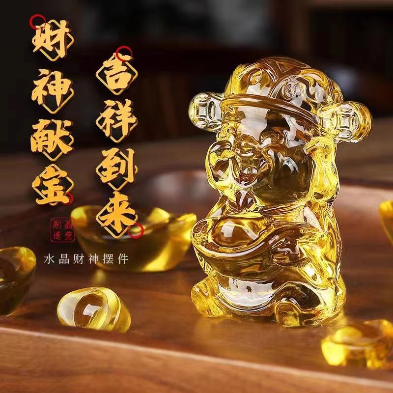 财神公仔礼品水晶工艺品琉璃桌宠摆件开业招财进宝装饰品黄水晶