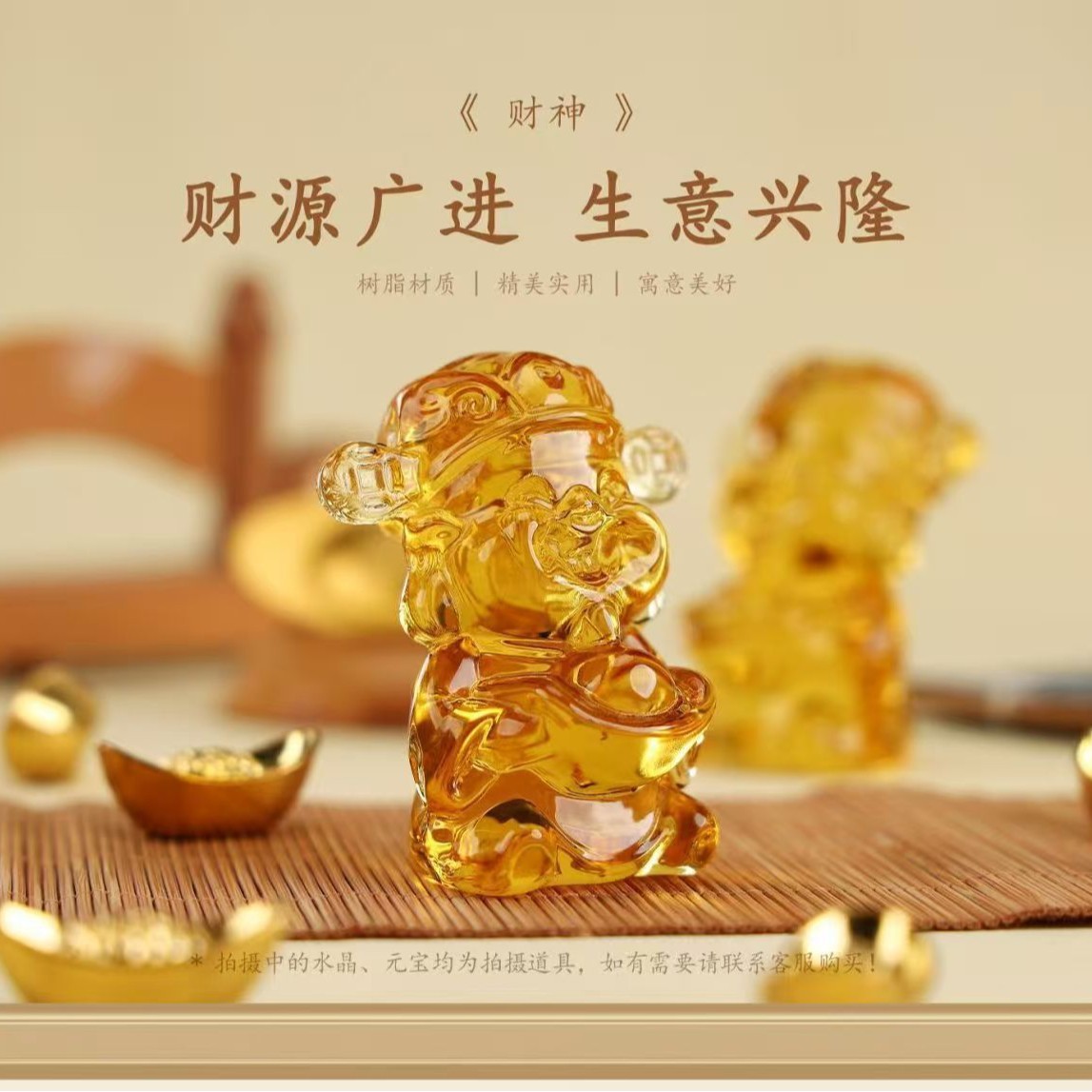 黄水晶财神琉璃摆件开业乔迁家居办公室桌面客厅玄关礼品财神爷