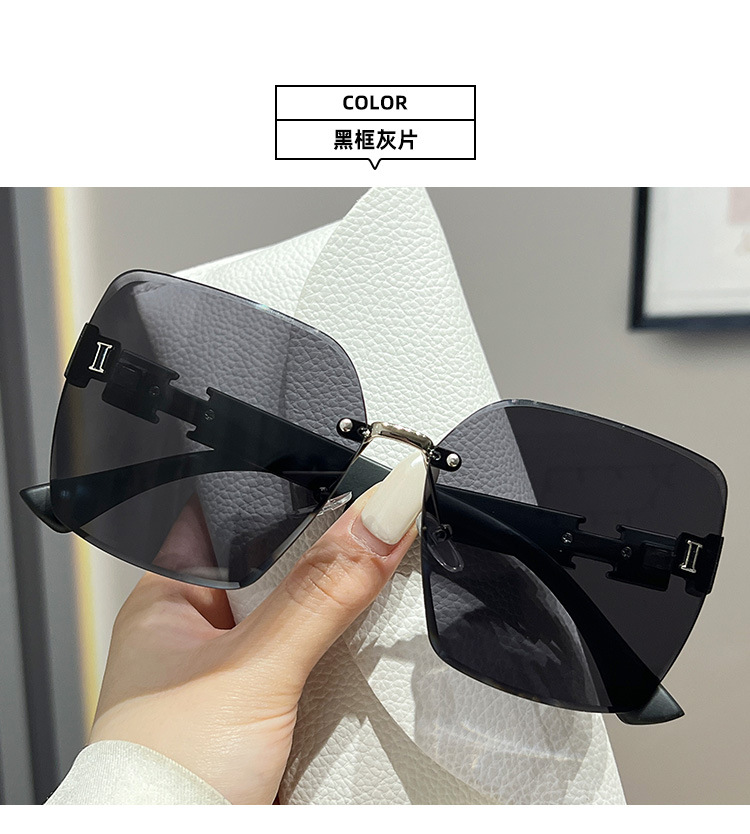 25新型ネットセレブ風フレームレスUVカットトレンドシェード気質大フレーム万能サングラス女性用メガネ