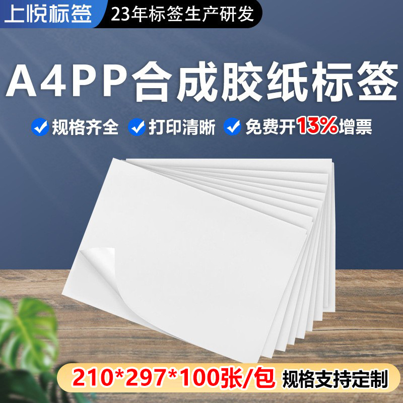 A4/PP合成テープ自己接着紙印刷可能ビニールシールレーザーインクジェット防水引き裂かれないシール
