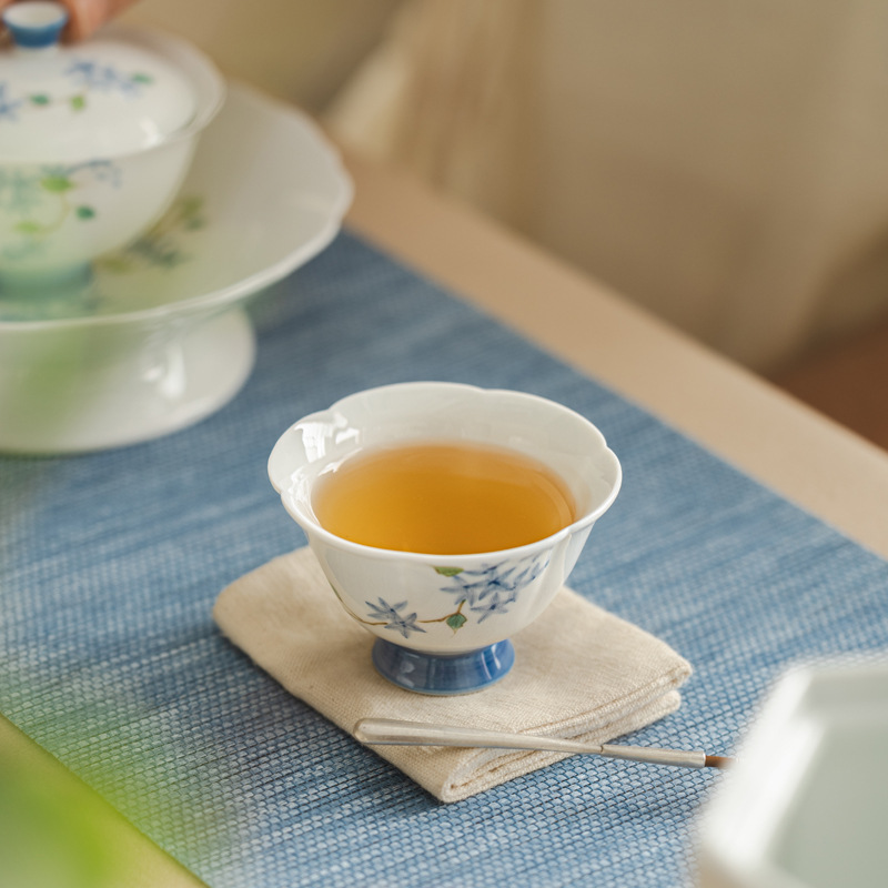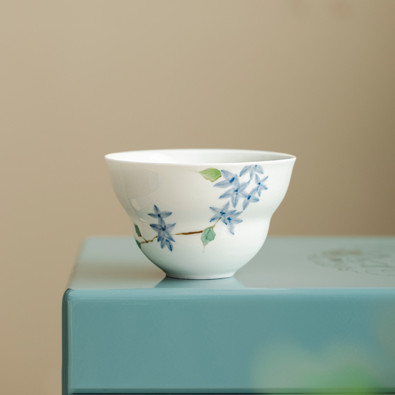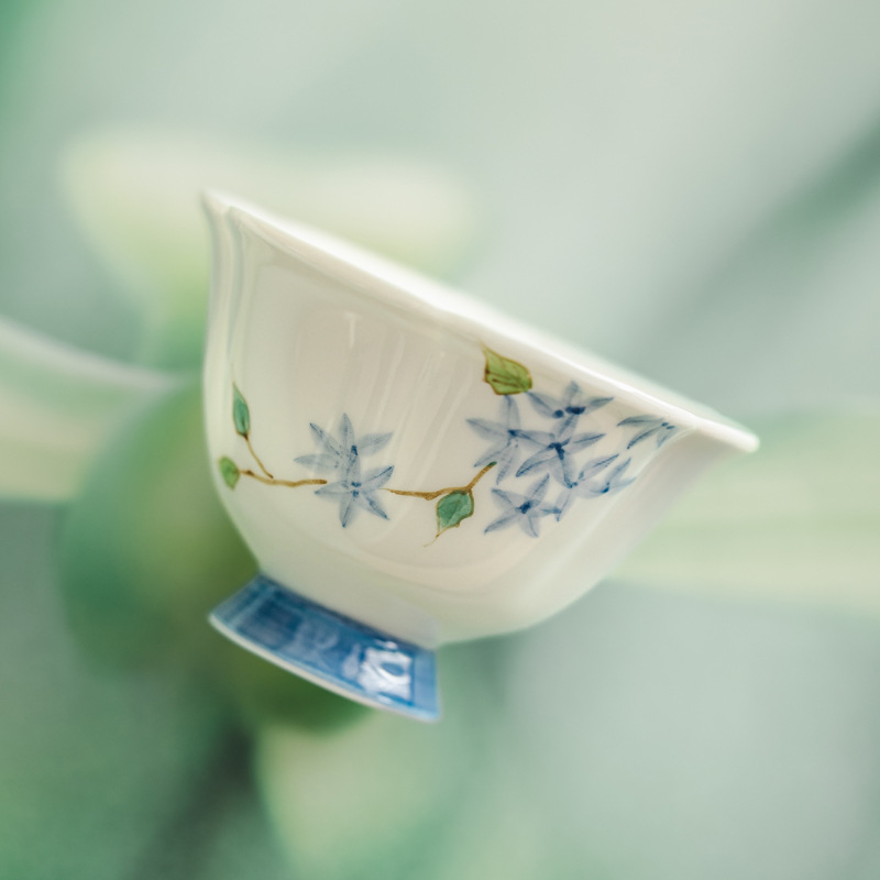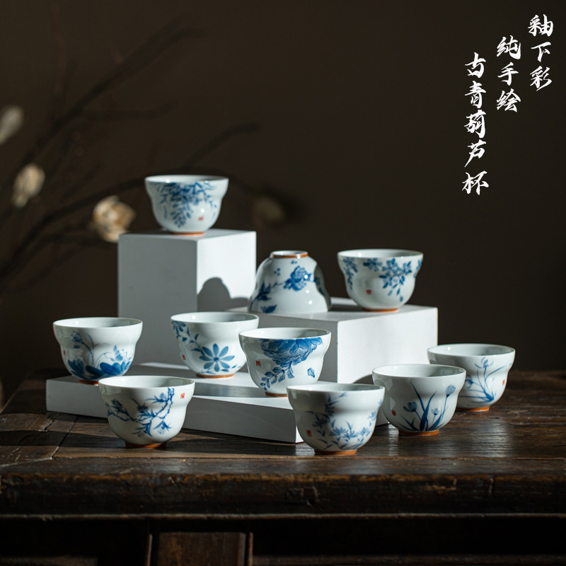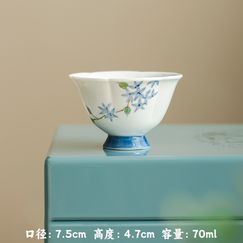 Ni Ren Shu 高白磁手描き小さな青い芽マスターカップ釉下色花びらひょうたんマスターカップ女性シングルカップ