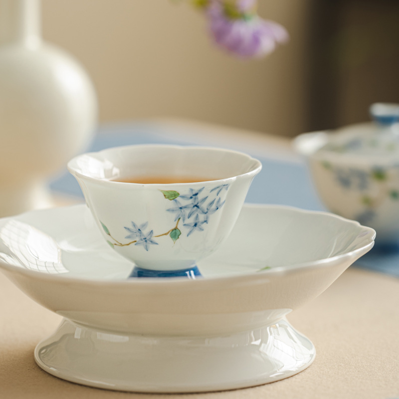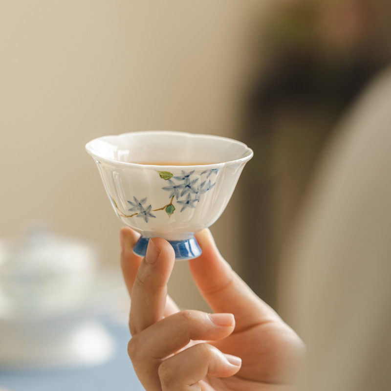 泥人叙氷種玉磁器手描きアジサイ杯釉薬下彩高白磁馬蹄杯家庭用品茗杯