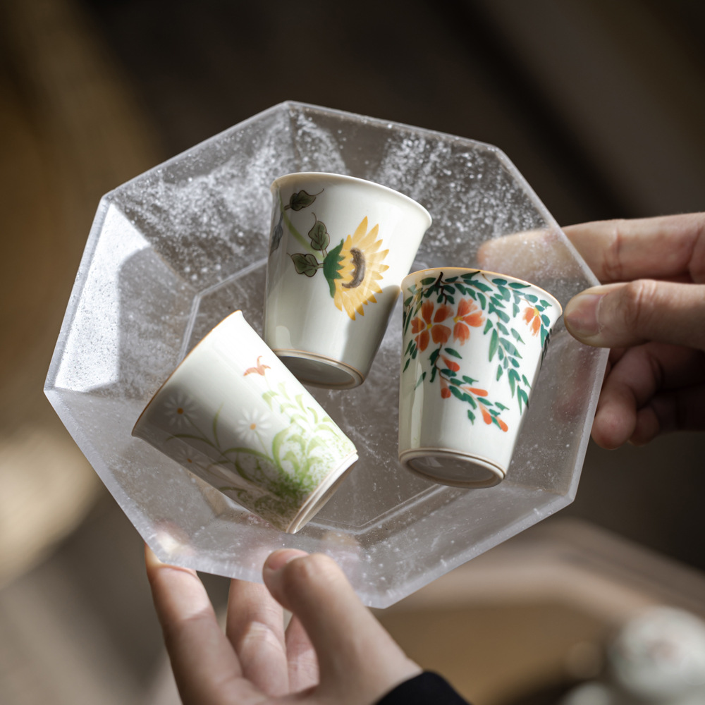 泥人叙手描き模造古束口杯釉薬下彩デイジー桂花45ml品茗杯茶室茶小コップ
