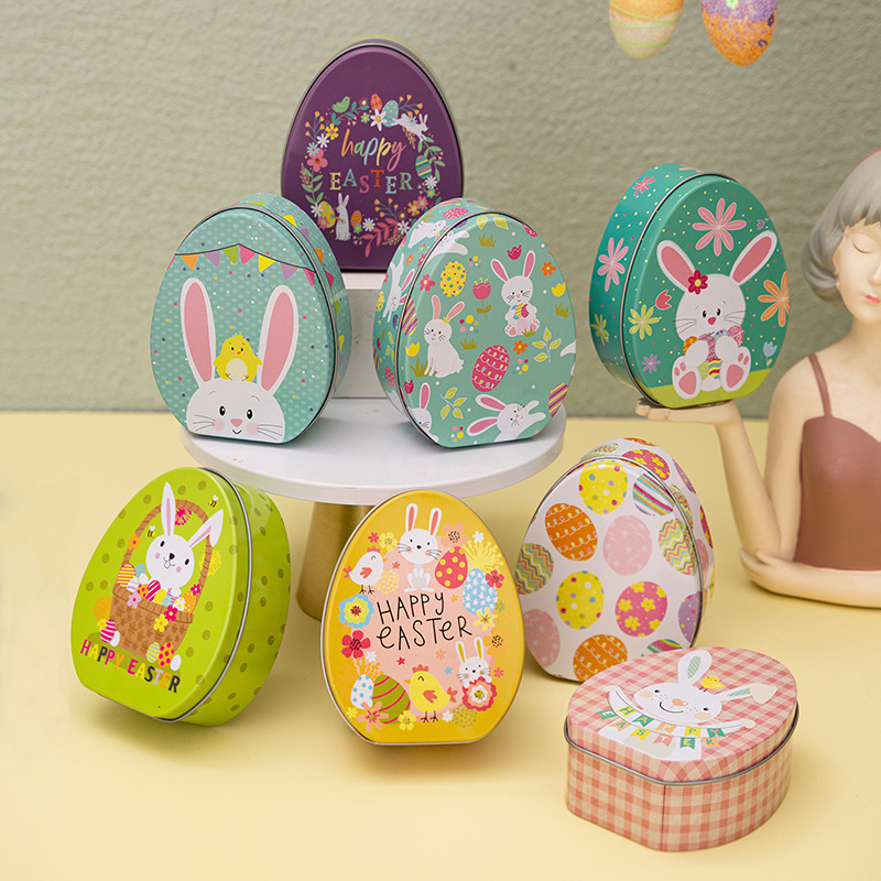 豪貝クロスボーダー新型イースター装飾用ウサギのフラット卵形ブリキ箱子供プレゼント箱キャンディー箱