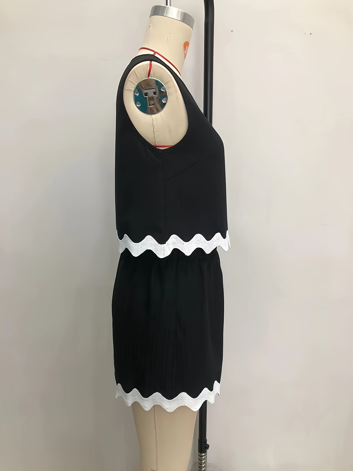 アマゾンクロスボーダー外国貿易婦人服新型衝突色ノースリーブショーツレーススーツ夏2点セット高級感