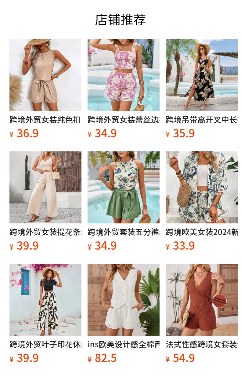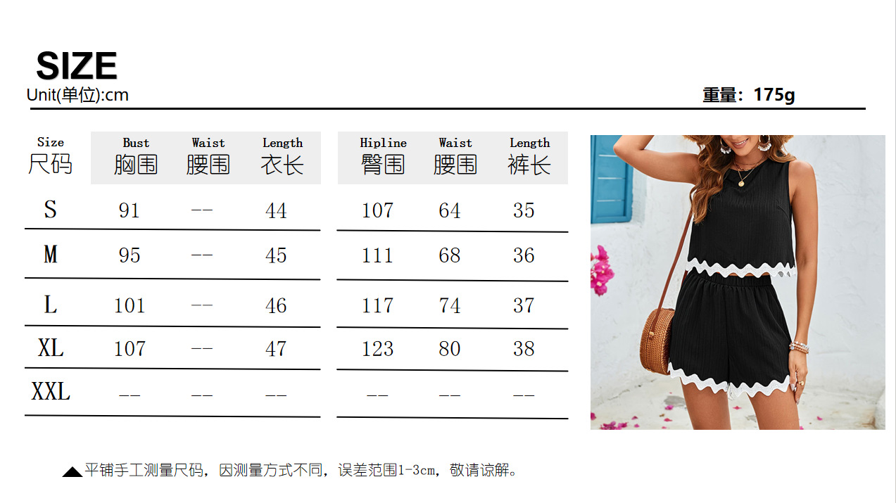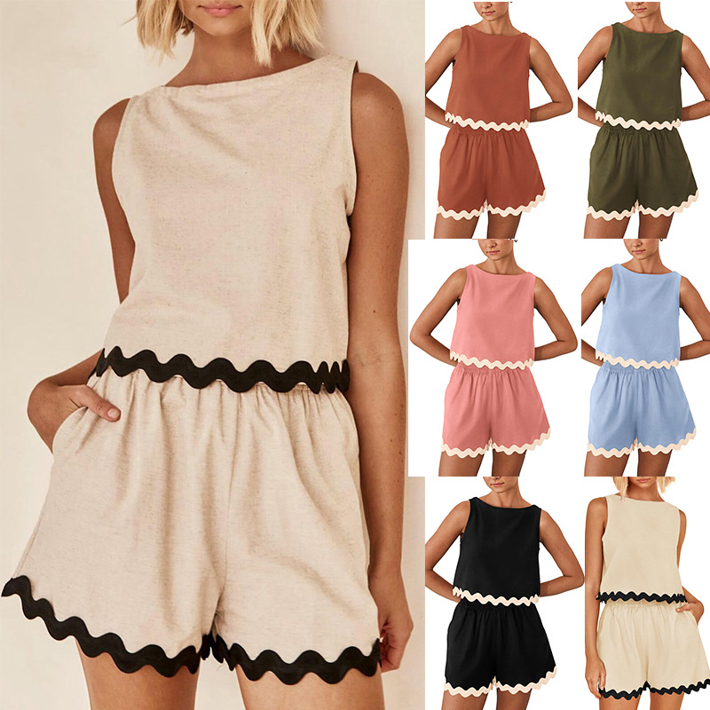 欧米の国境を越えた対外貿易婦人服2024夏のリネンレースの縁の丸首ベストの短い上着のショートパンツ