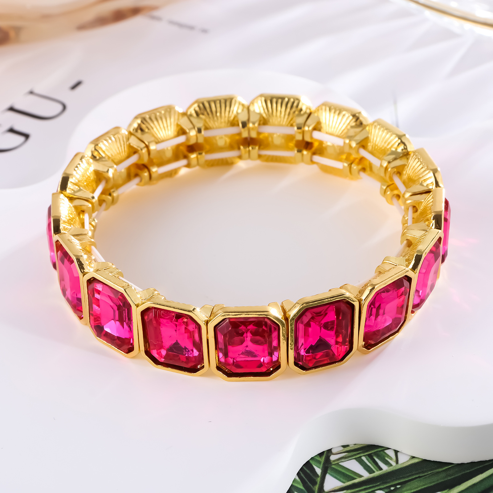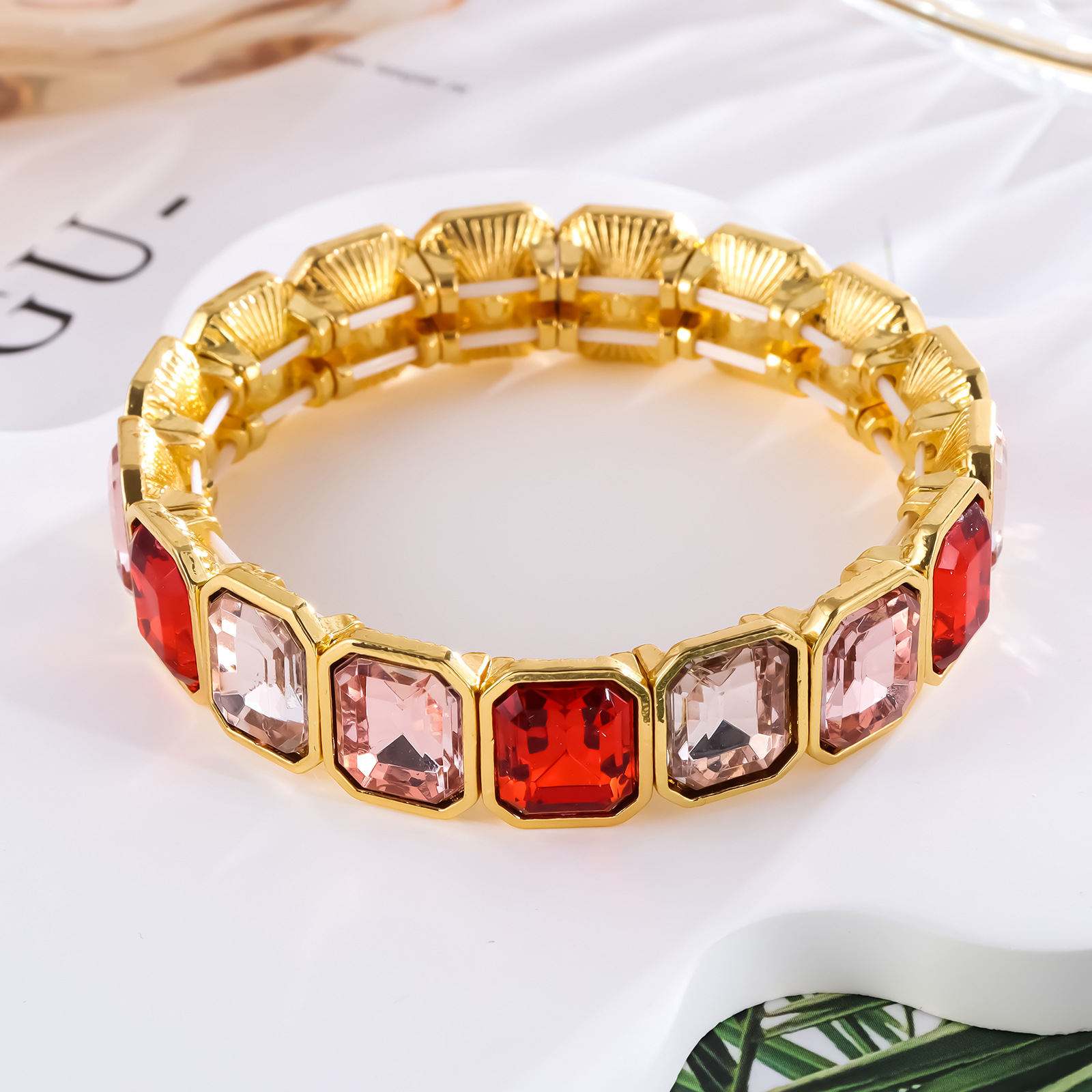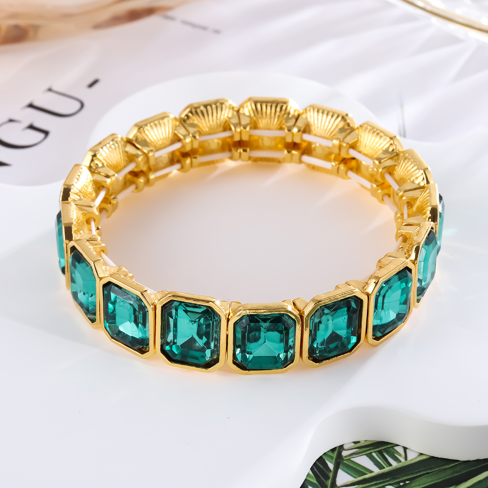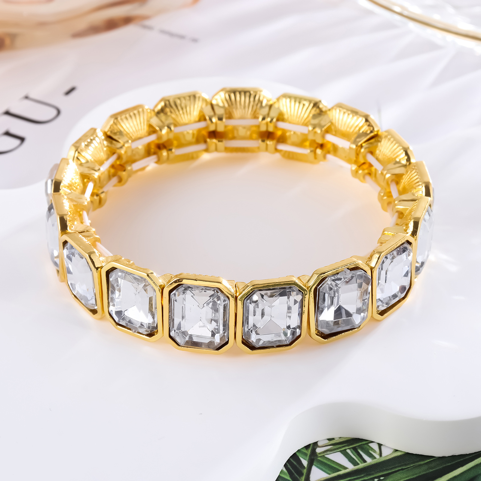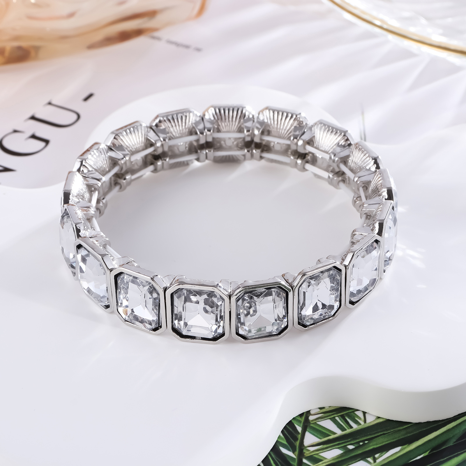 ヨーロッパとアメリカの国境を越えた売れ筋ブレスレット誇張されたガラス合金弾性弾性調節可能なブライダルファッションブレスレット個性